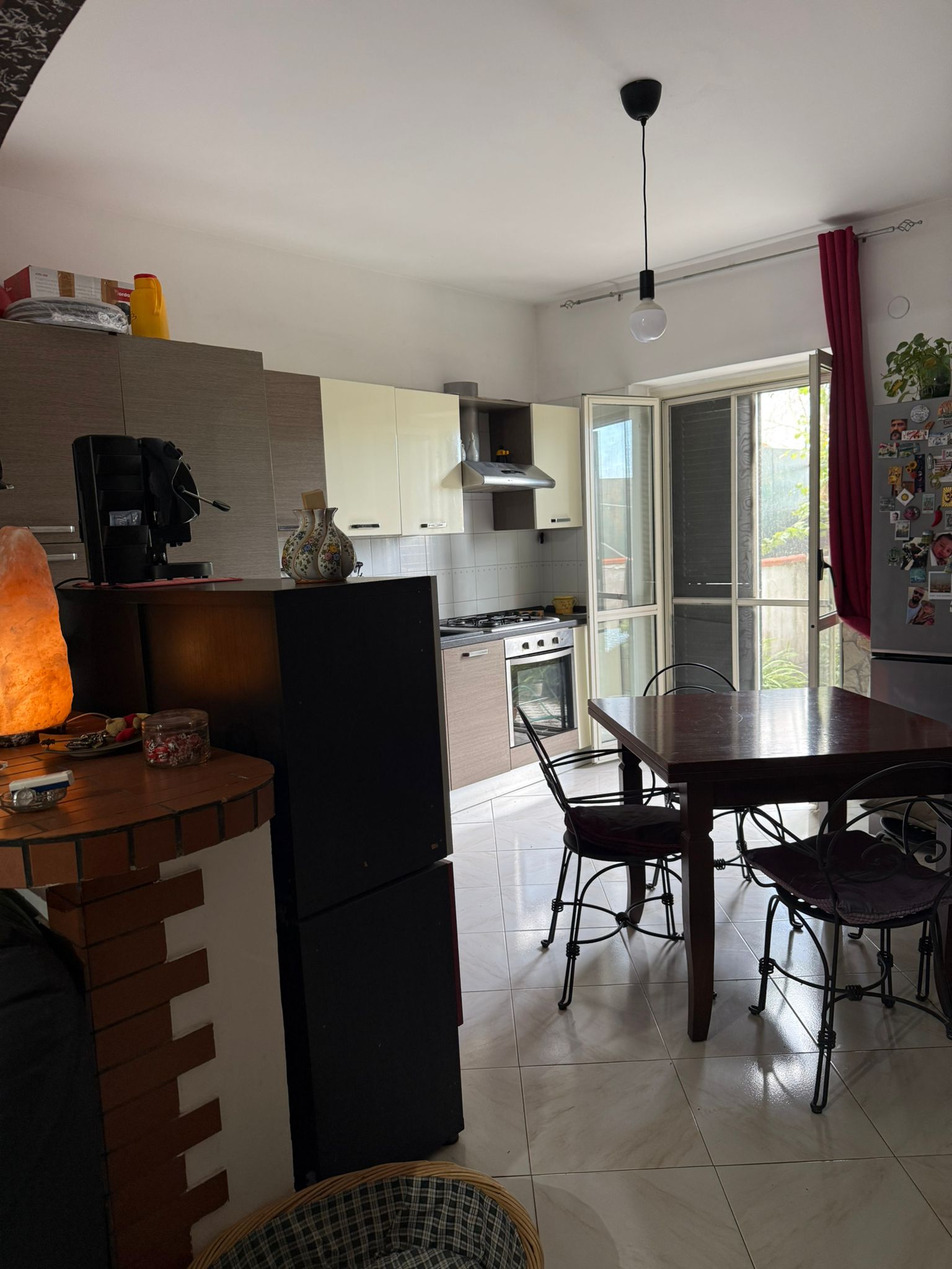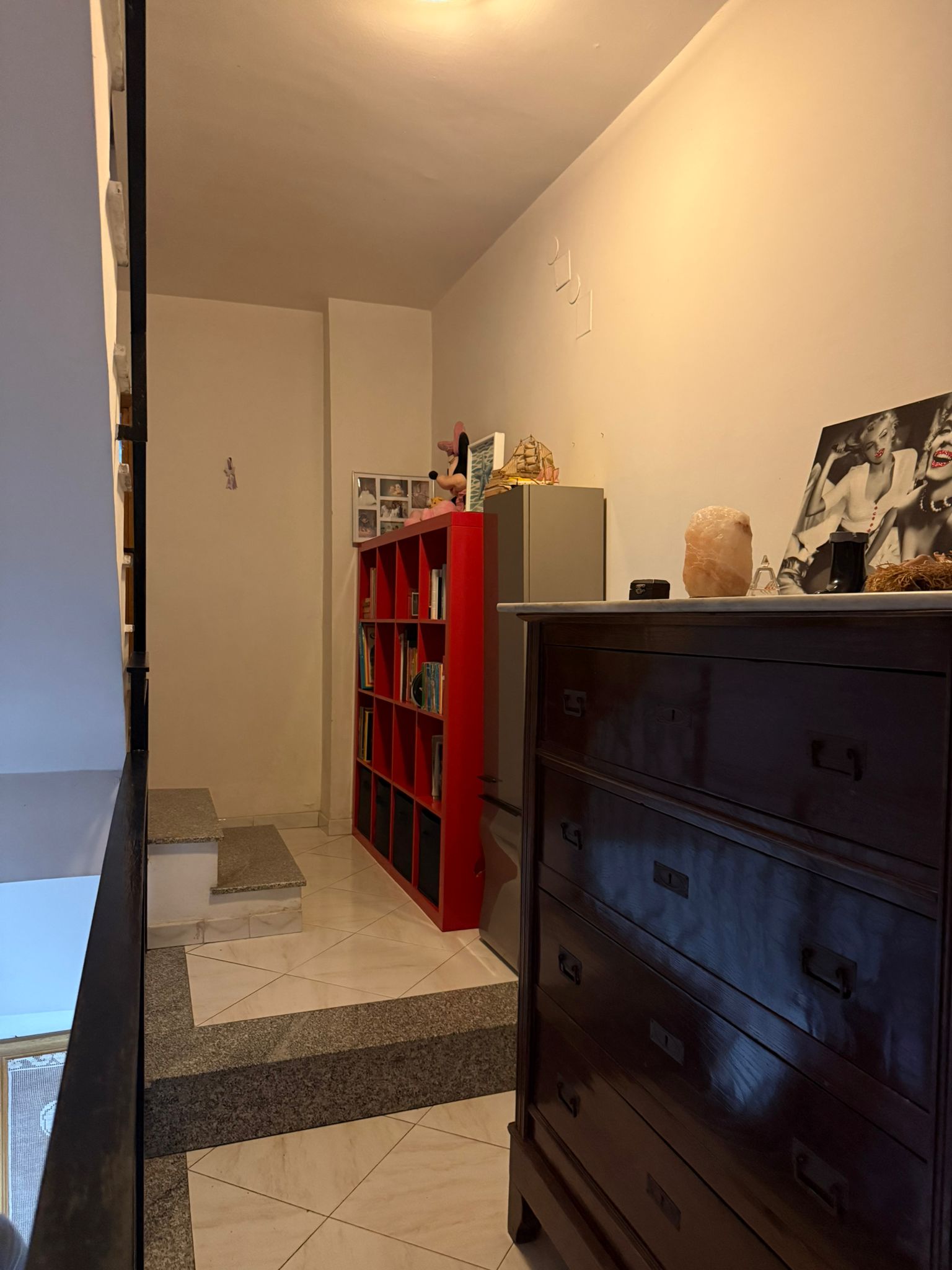 Accedendo all’abitazione troviamo una comoda e luminosa zona giorno con salone e cucina living, che si affaccia su un piccolo spazio esterno retrostante, perfetto per momenti di relax. Sempre sullo stesso livello sono presenti un bagno e un ripostiglio.