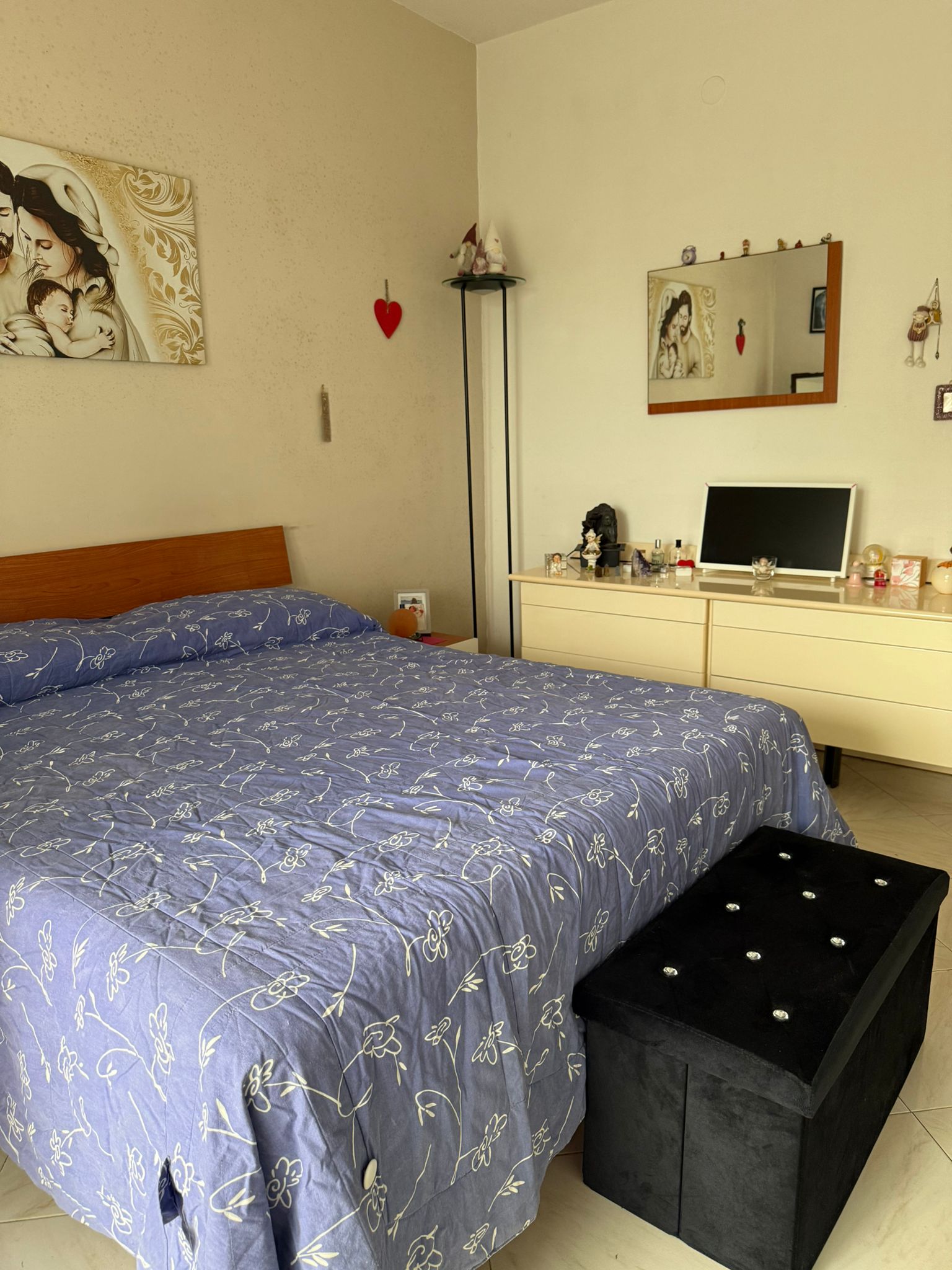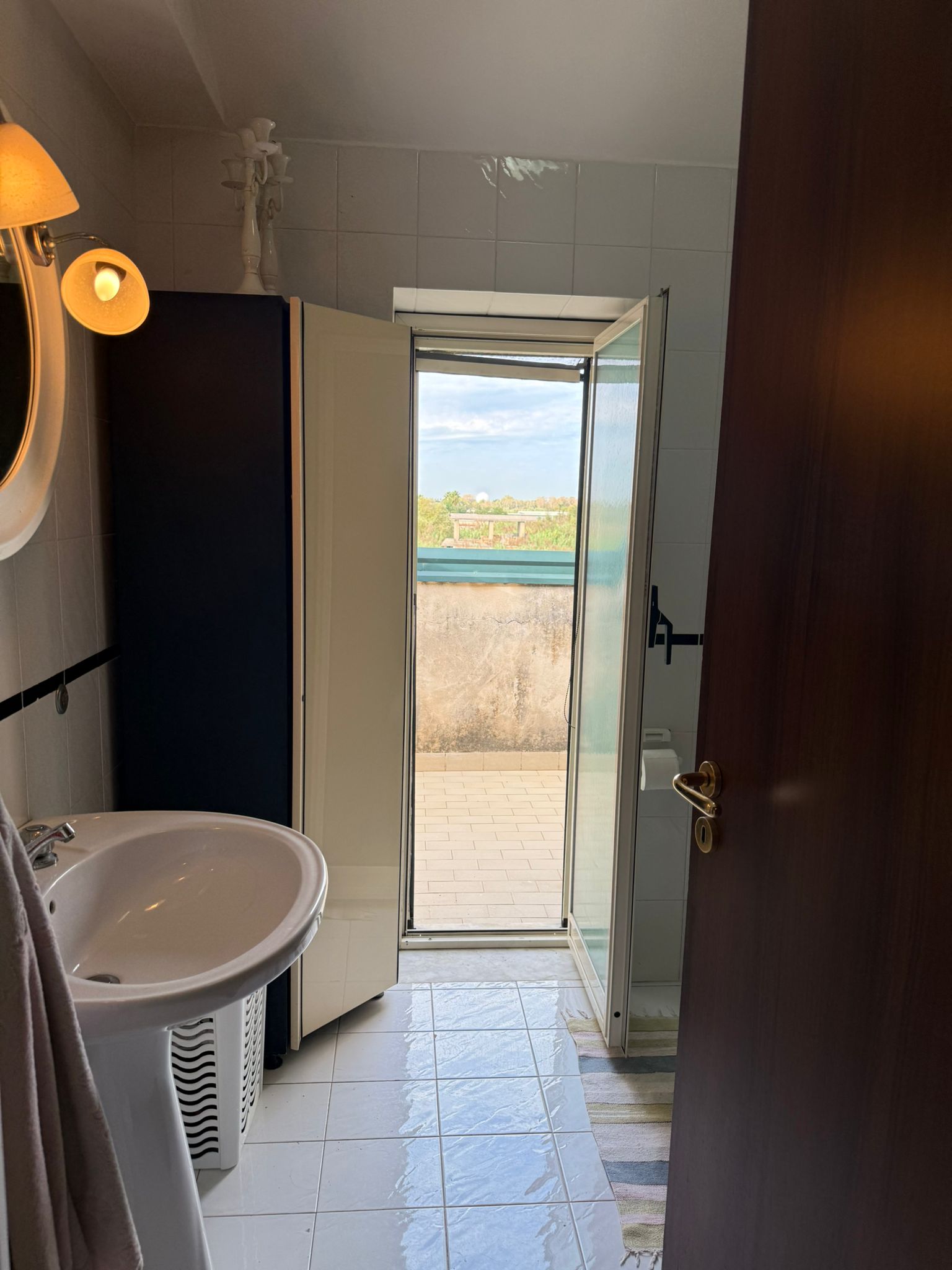 Una scala in marmo conduce alla zona notte, composta da un ampio disimpegno, due camere da letto (una con balcone e una con terrazzo), una cameretta con finestra, un ripostiglio e un bagno spazioso.