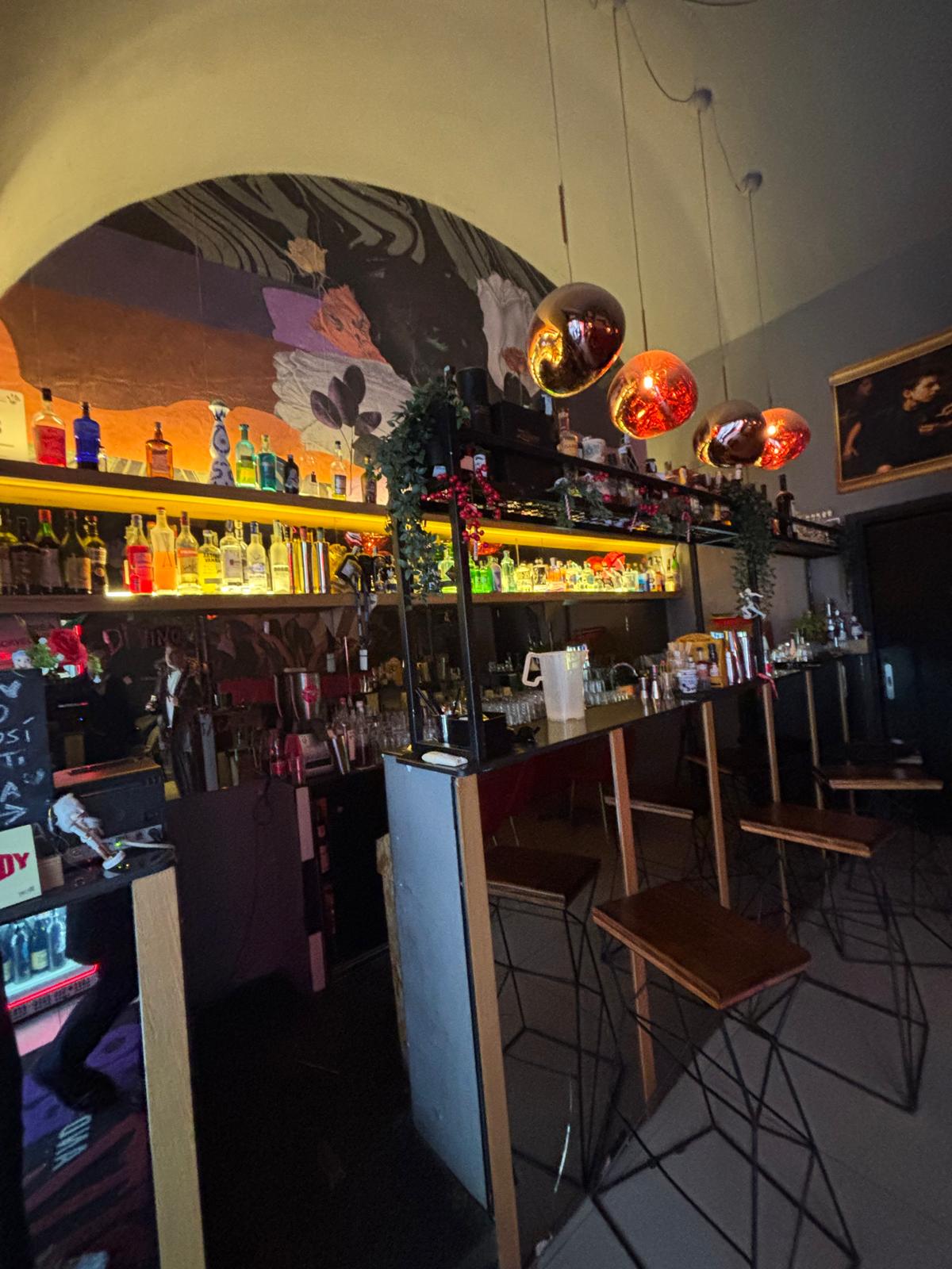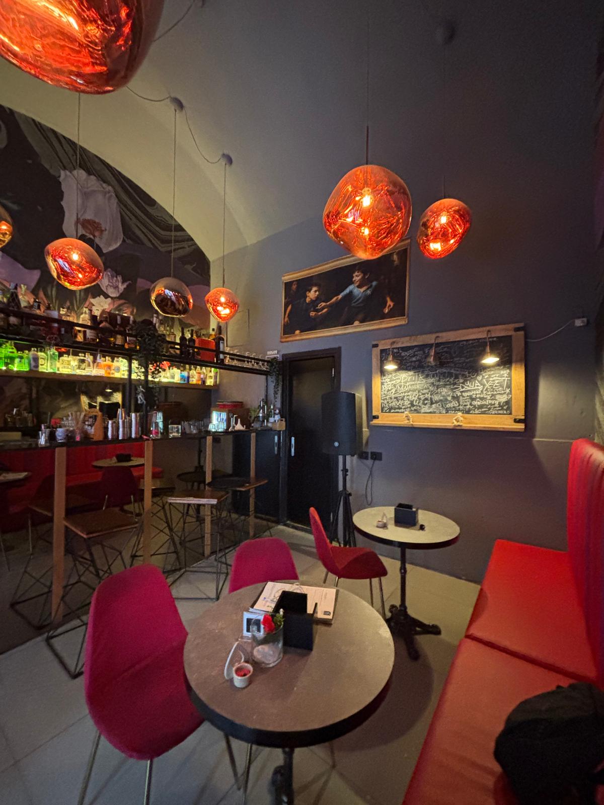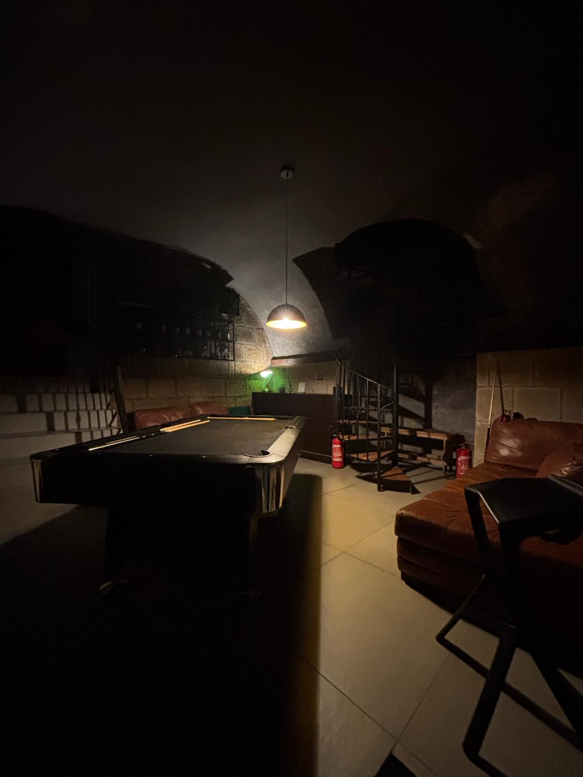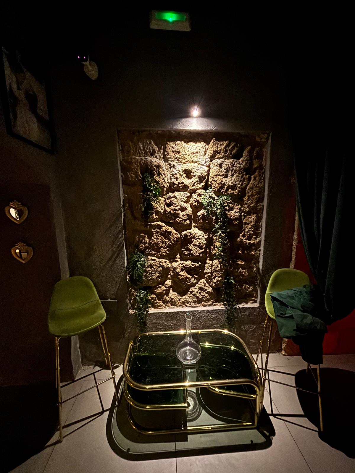 L’ingresso conduce a una prima sala con bancone bar e ambienti in tufo a vista, che conferiscono calore e carattere. Da qui si accede a un’accogliente sala con circa 30 posti a sedere, ideale per aperitivi e momenti di convivialità. Salendo al piano superiore si trova uno spazio più intimo, perfetto per coppie o gruppi che cercano riservatezza, seguito da un’ulteriore sala dedicata all’intrattenimento, completa di tavolo da biliardo, piccolo angolo bar e comodi divani.