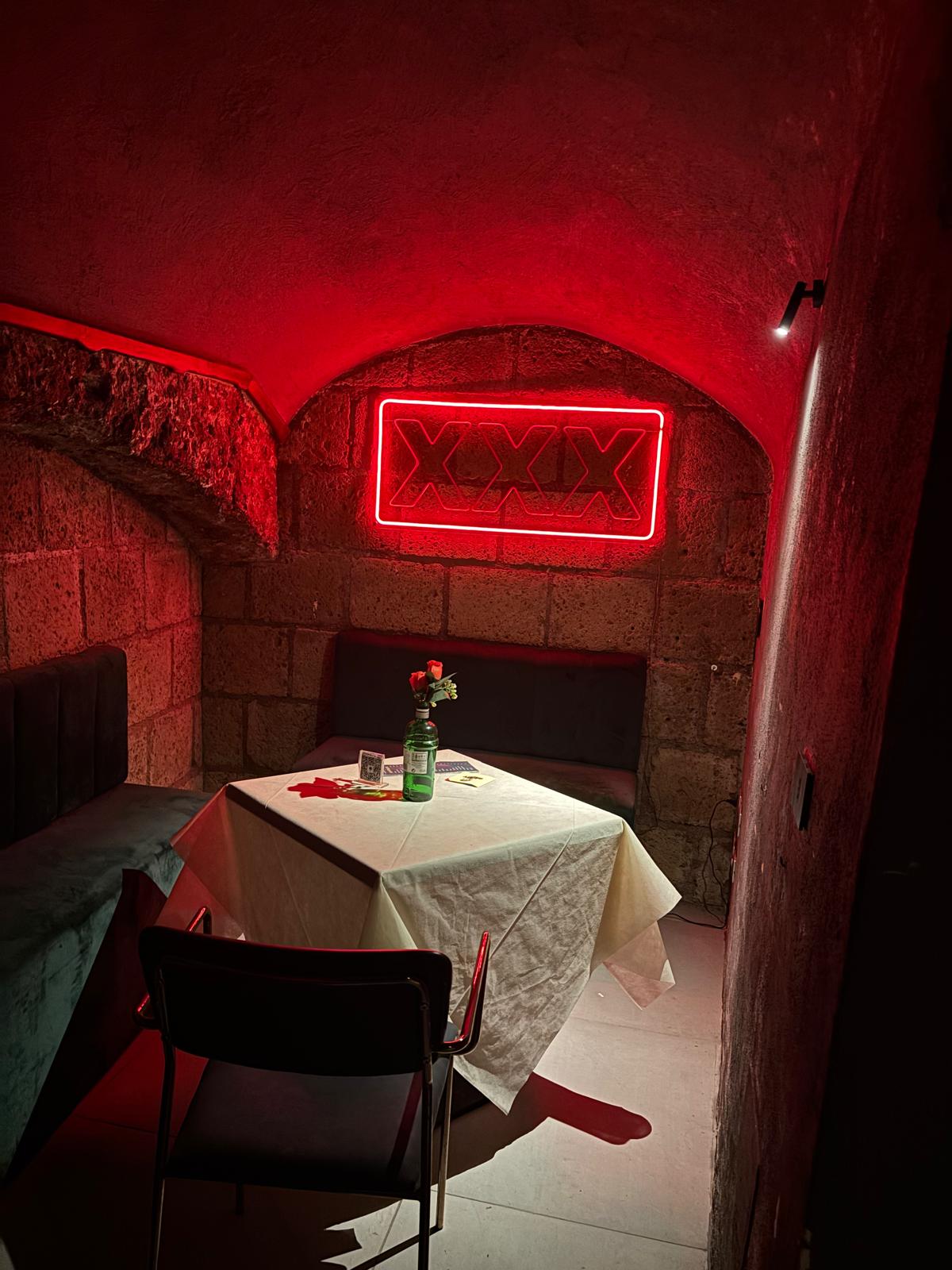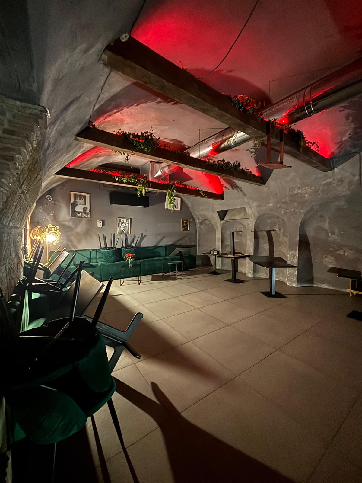 Il percorso continua fino all’area più suggestiva dell’intero locale: una sala di circa 80 mq con forma e atmosfera tipiche delle grotte medievali del 1300. Un ambiente scenografico ideale per feste private, compleanni, cene spettacolo ed eventi di ogni genere.