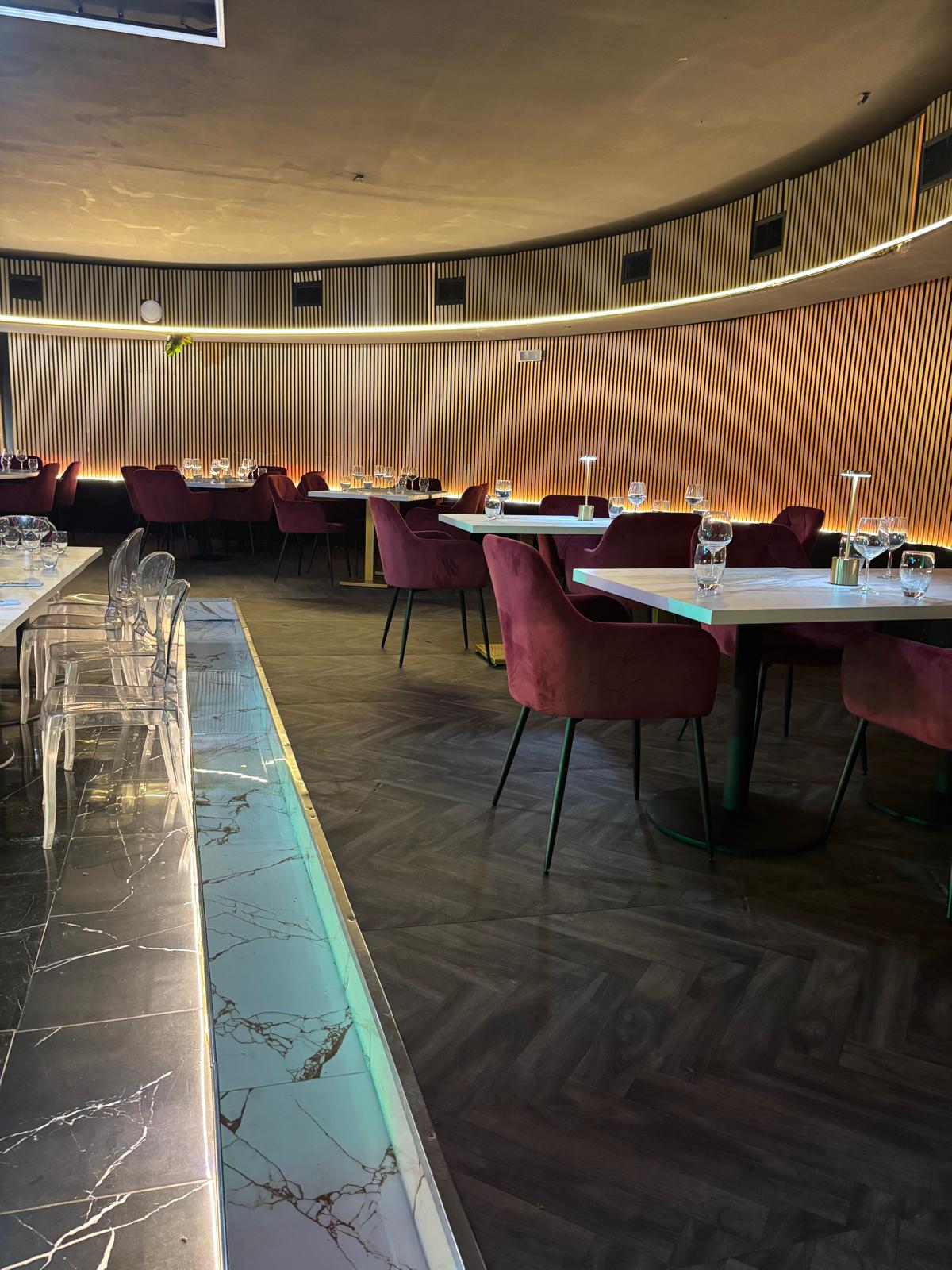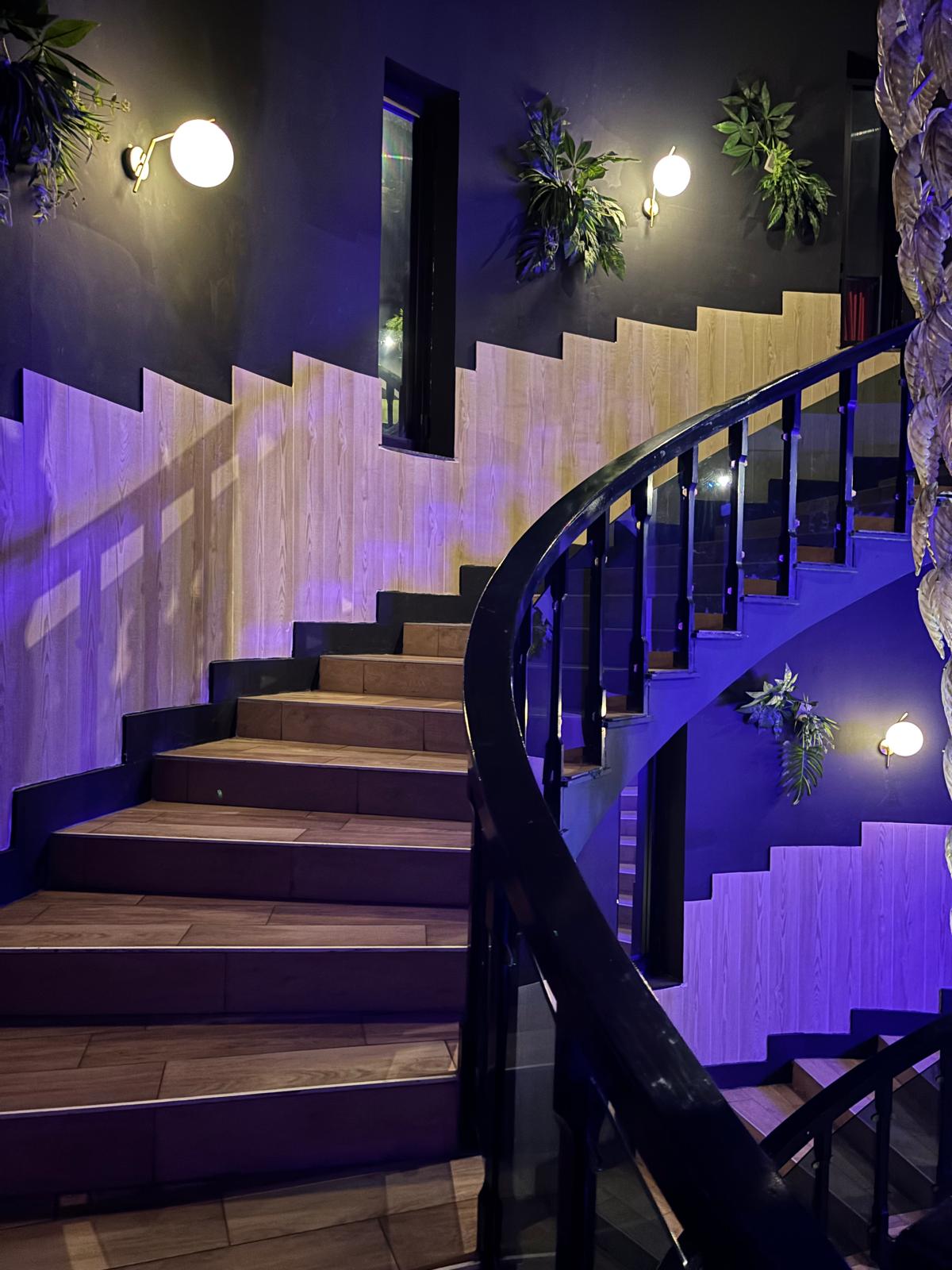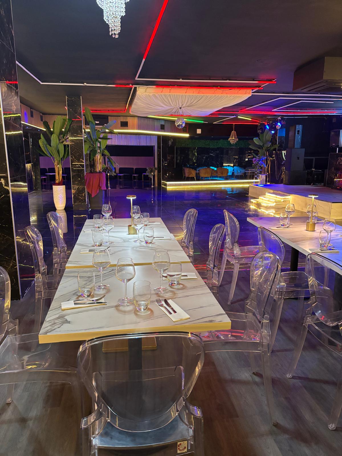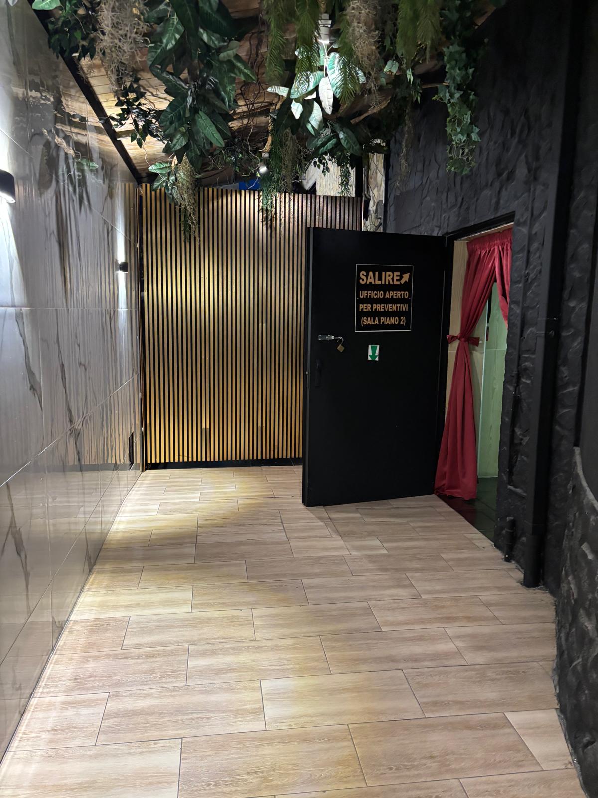 Il locale, dal design moderno e funzionale, si sviluppa su più livelli. L’ingresso accoglie gli ospiti con un ampio spazio dotato di doppio guardaroba; una scala conduce al primo piano, dove si trova una grande sala con bar, ufficio e cucina completamente ammobiliata. Un’ulteriore scala collega al terrazzo panoramico, ideale per realizzare un suggestivo ambiente rooftop perfetto per eventi e serate estive.