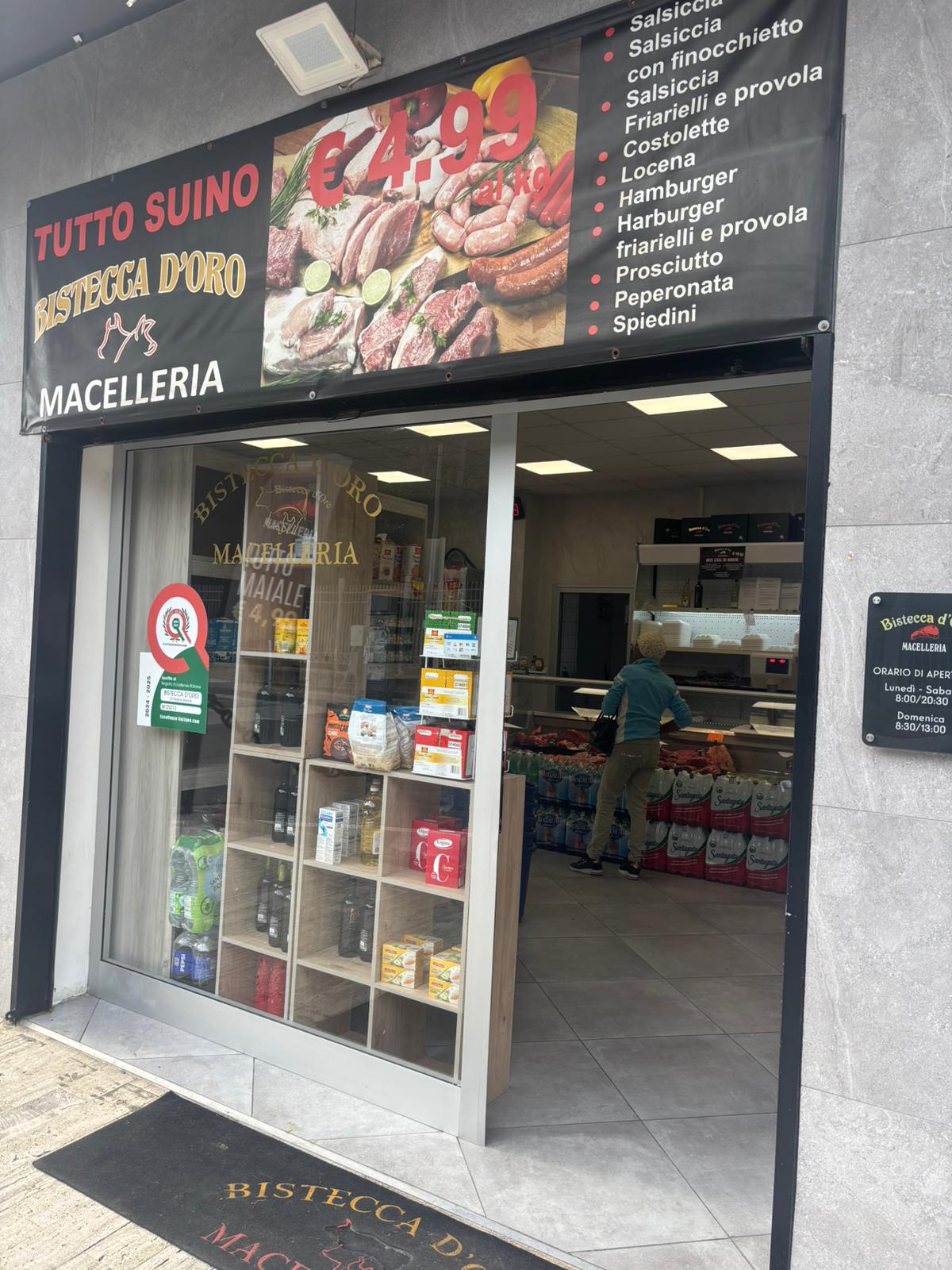 Il locale, di circa 75 mq, dispone di un doppio ingresso e si presenta in ottime condizioni. All’interno troviamo un ampio bancone per la carne di circa 6 mq, frigorifero, scaffalature e zona cassa. Nella parte retrostante è presente il laboratorio, dotato di due celle frigorifere, un bagno per il personale e un accesso indipendente.