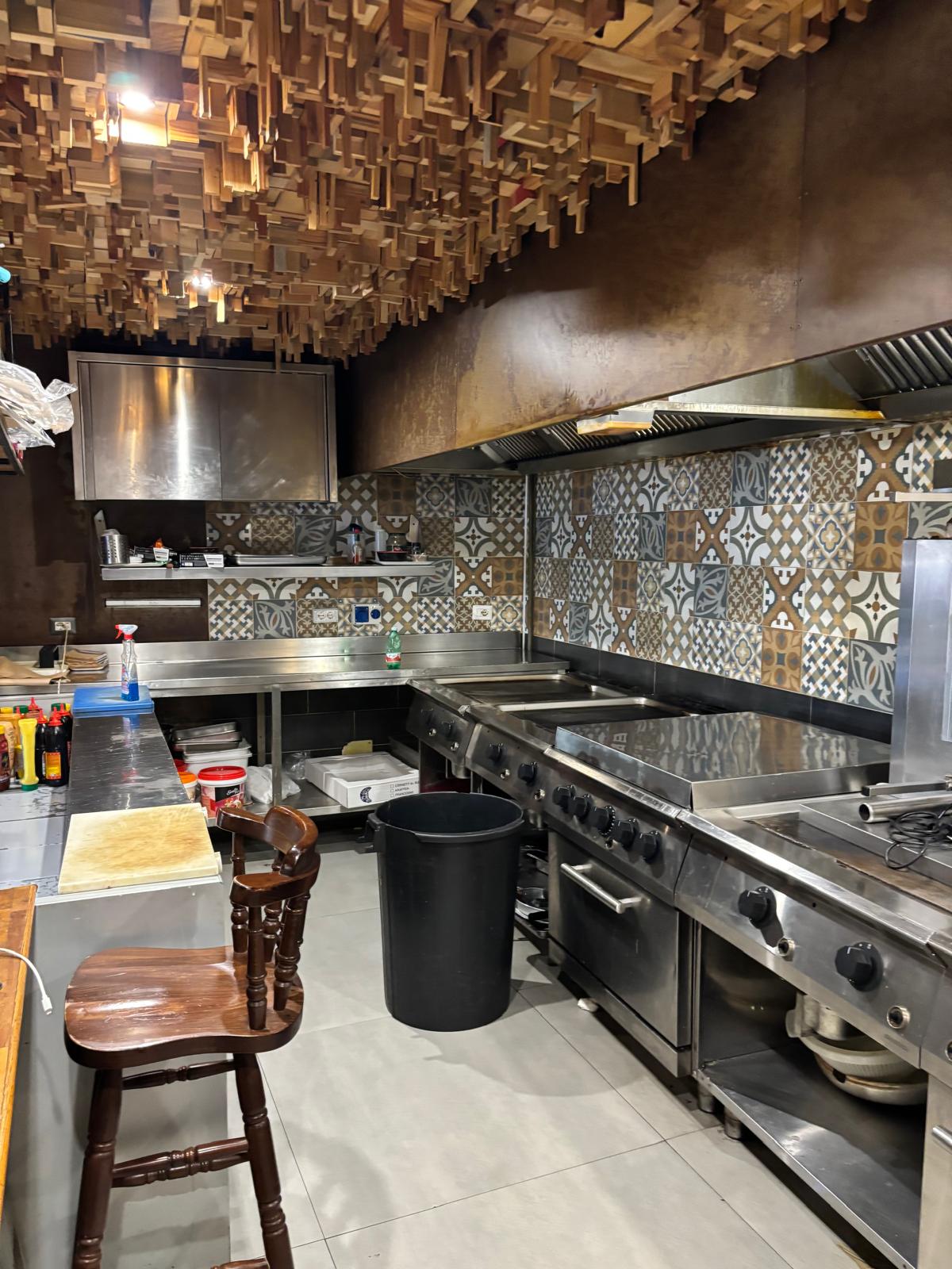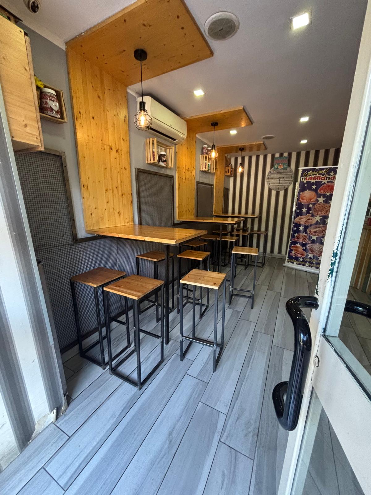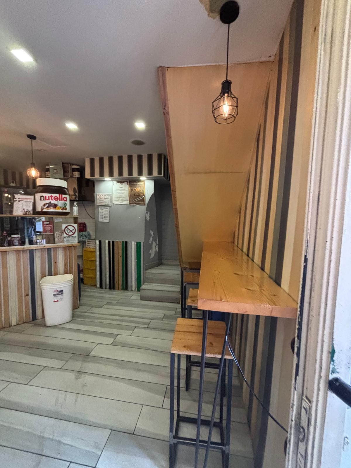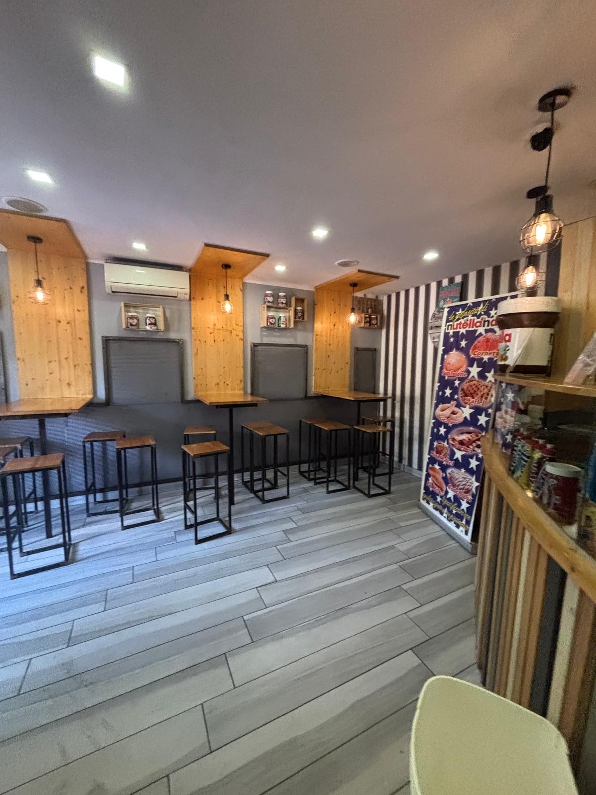 Il locale ha una superficie di circa 40 mq distribuiti su due livelli: al piano terra si trovano la sala con bancone, la cucina e circa 20 posti a sedere interni, mentre al piano superiore è presente un comodo deposito.