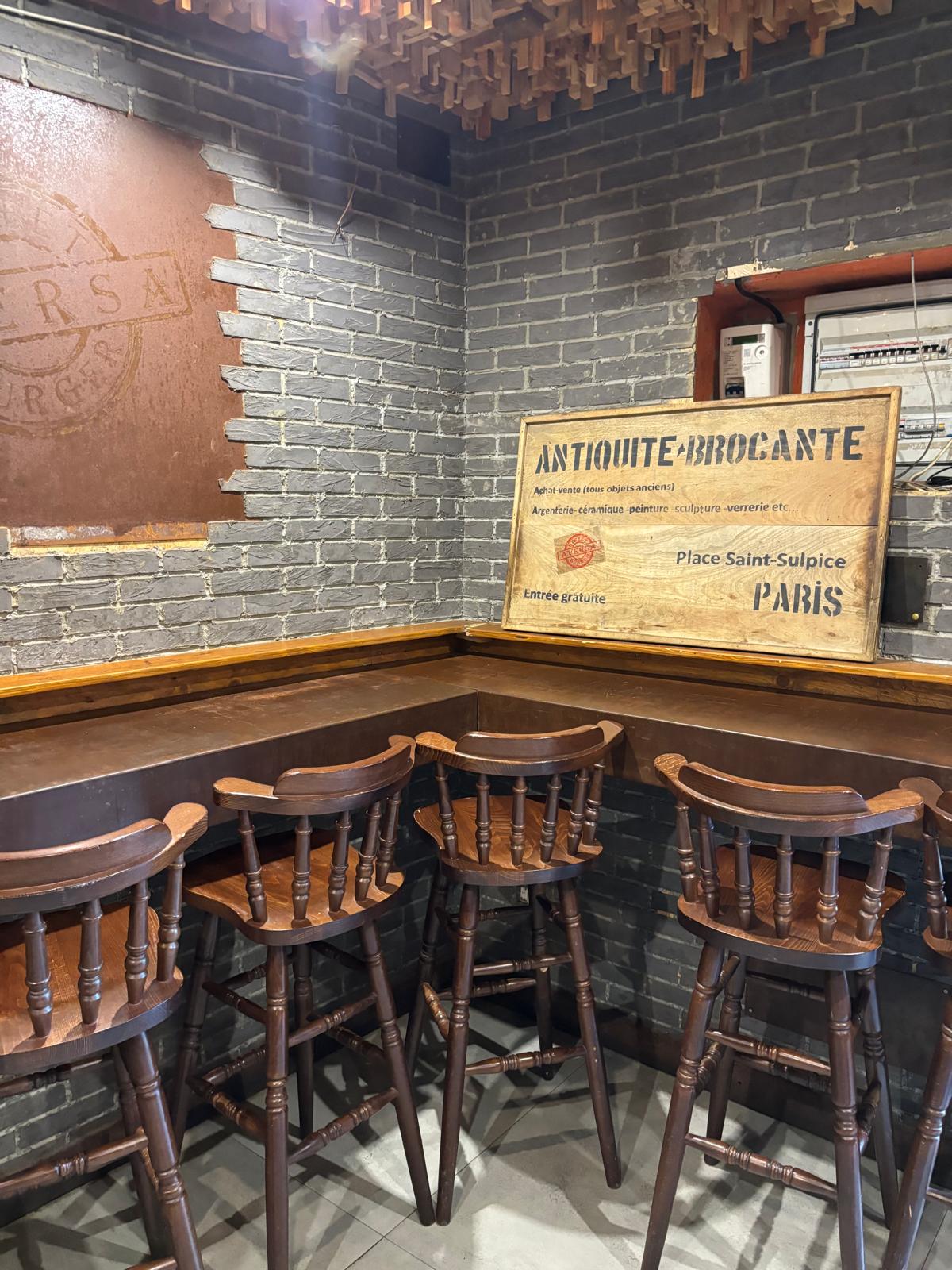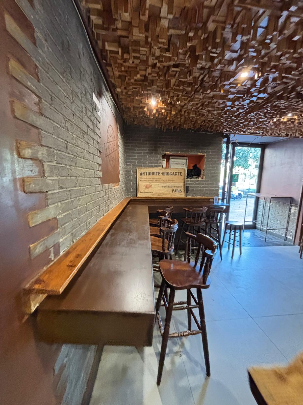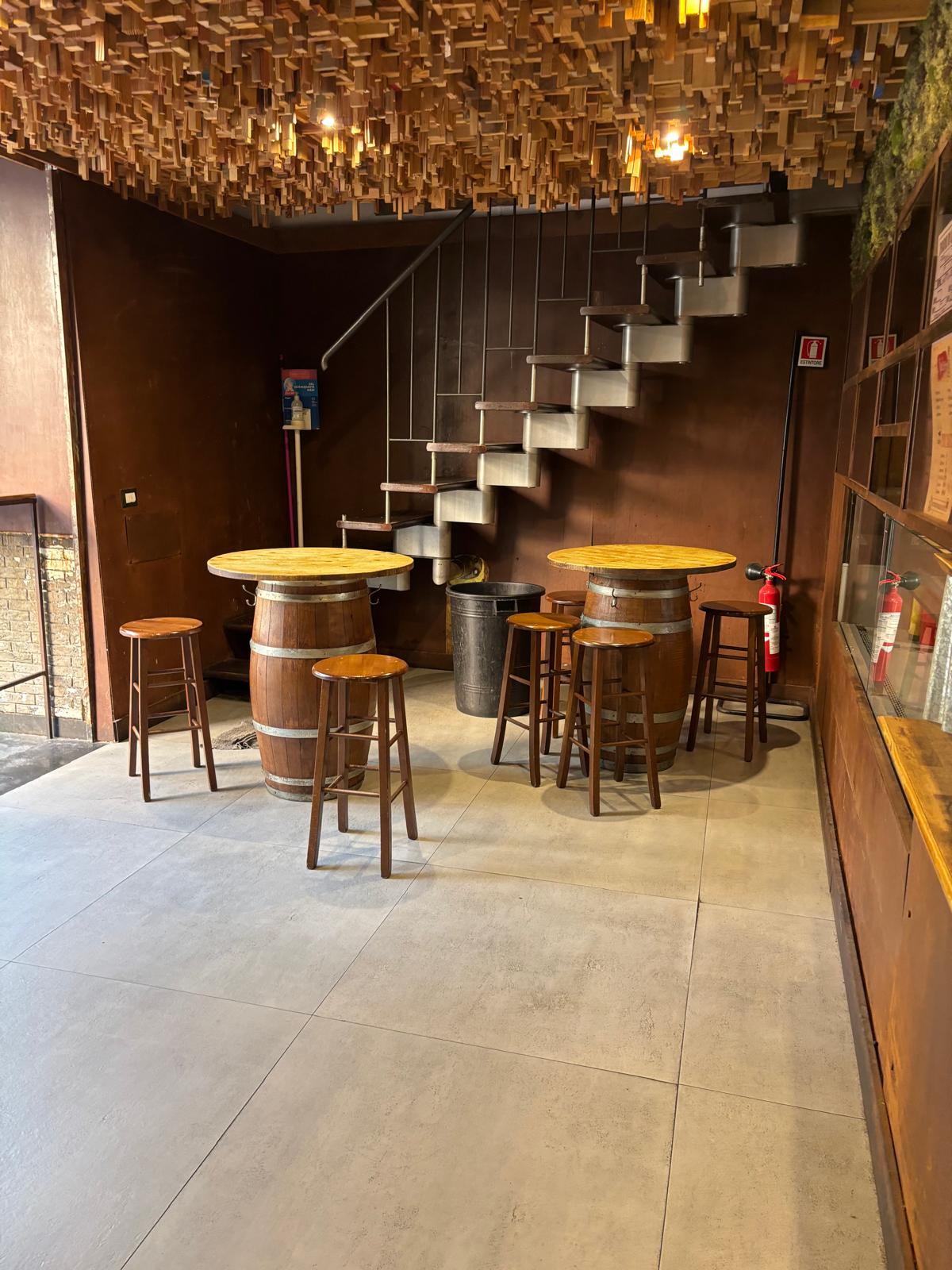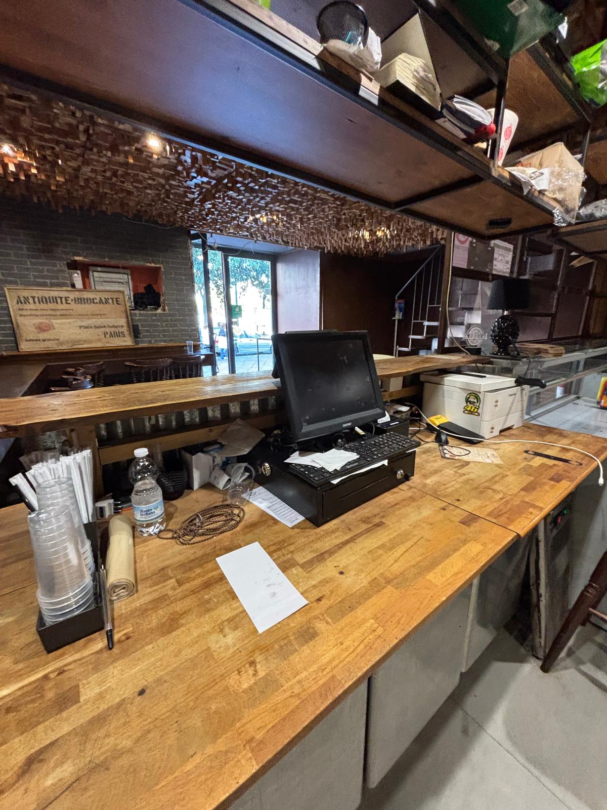 Il locale ha una superficie di circa 40 mq distribuiti su due livelli: al piano terra si trovano la sala con bancone, la cucina e circa 20 posti a sedere interni, mentre al piano superiore è presente un comodo deposito.