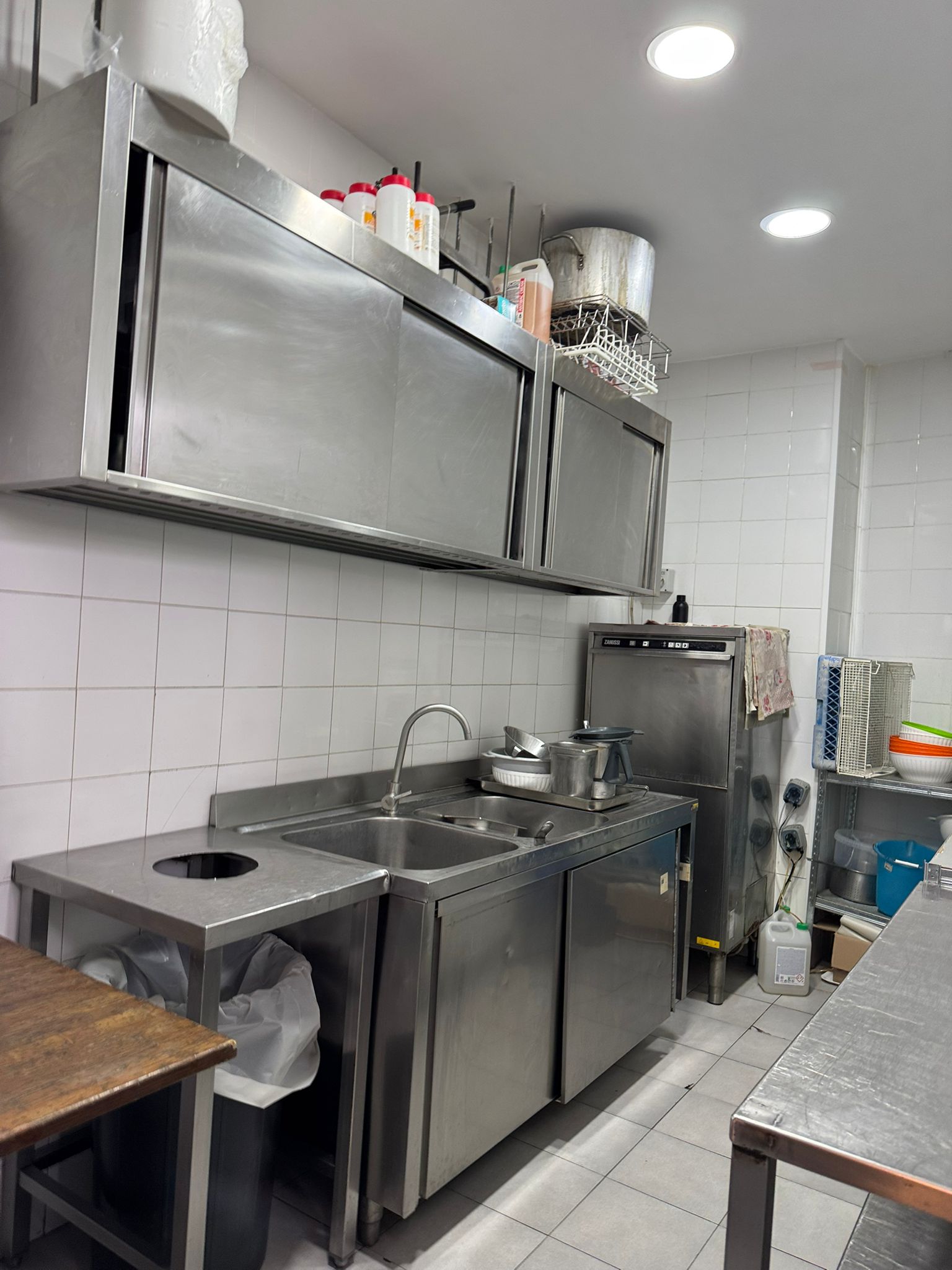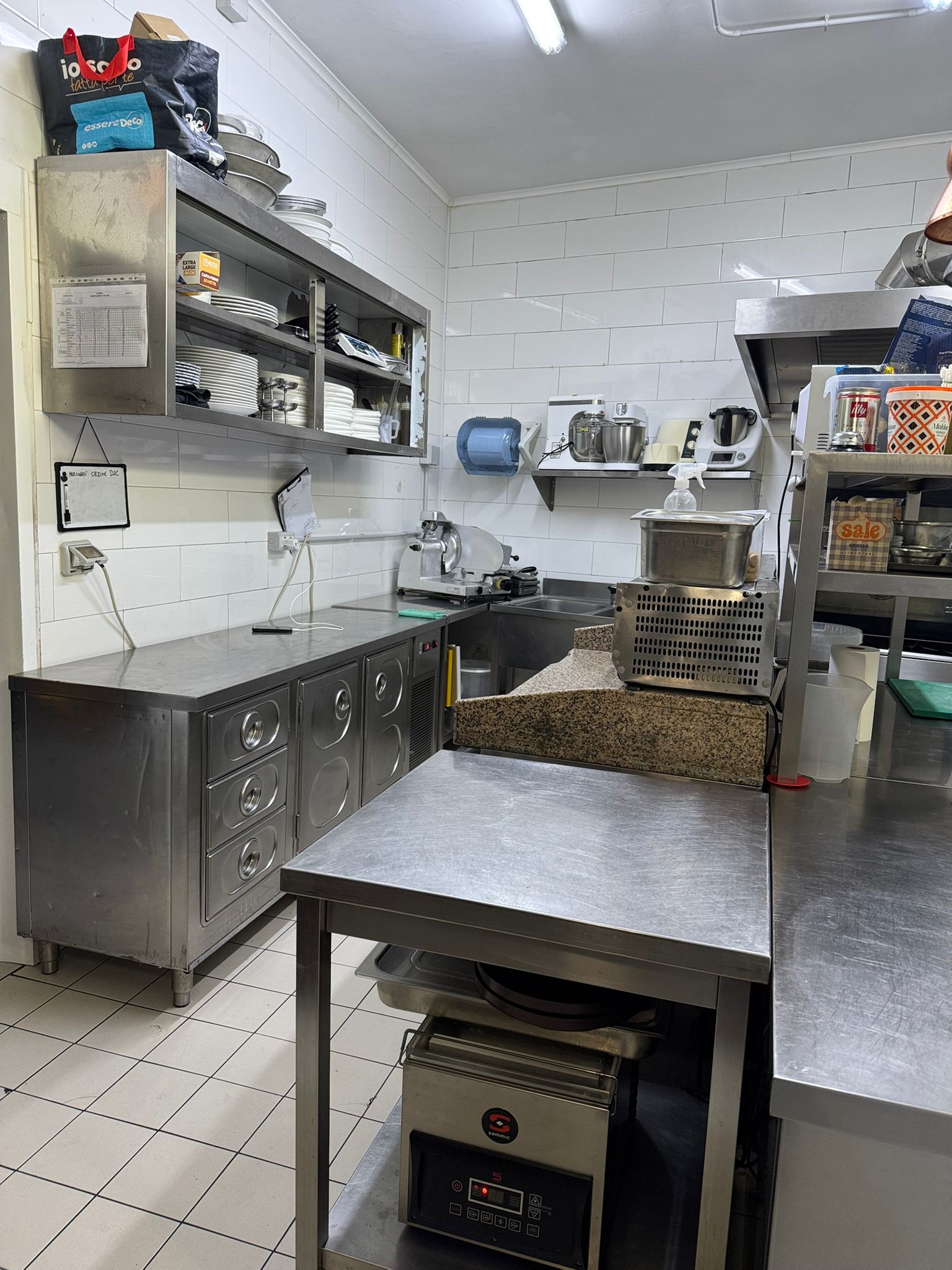 La cucina è completamente ammobiliata e attrezzata, affiancata da spogliatoio per il personale e tre servizi igienici separati (uomo, donna e disabili), in linea con le normative vigenti.