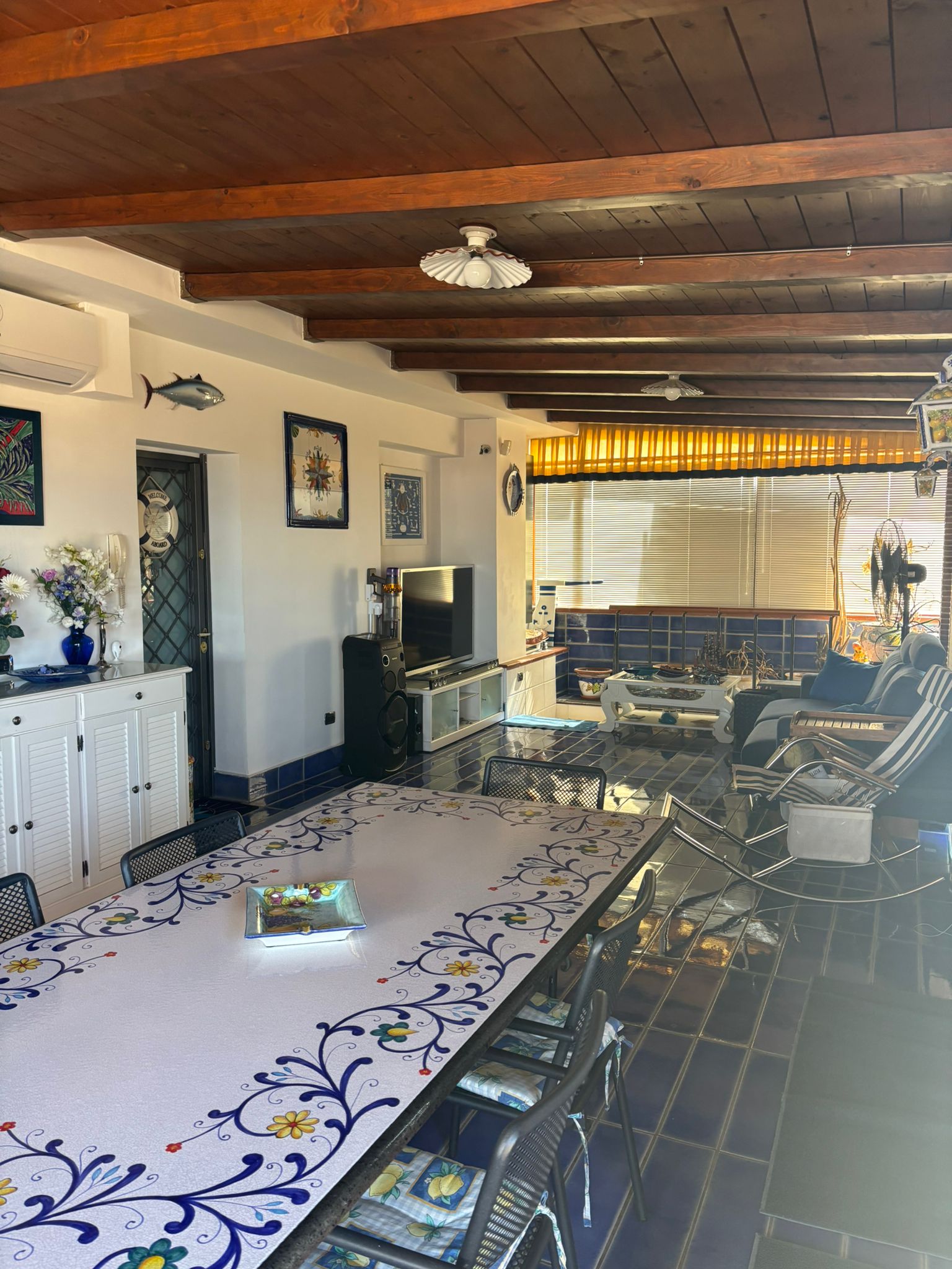 L’immobile si sviluppa su due livelli e colpisce fin da subito per la cura dei dettagli e la qualità delle rifiniture. Al piano superiore si apre una luminosa zona living con cucina a vista, impreziosita da un tetto in legno coibentato e da una caratteristica cucina in muratura con dispensa. Completa il piano un bagno rifinito con maioliche vietresi. Da qui si accede a uno splendido terrazzo di circa 100 mq, con vista mare, perfetto per vivere momenti di relax all’aperto, grazie anche alla presenza di una doccia esterna e di un forno a legna per pizze.