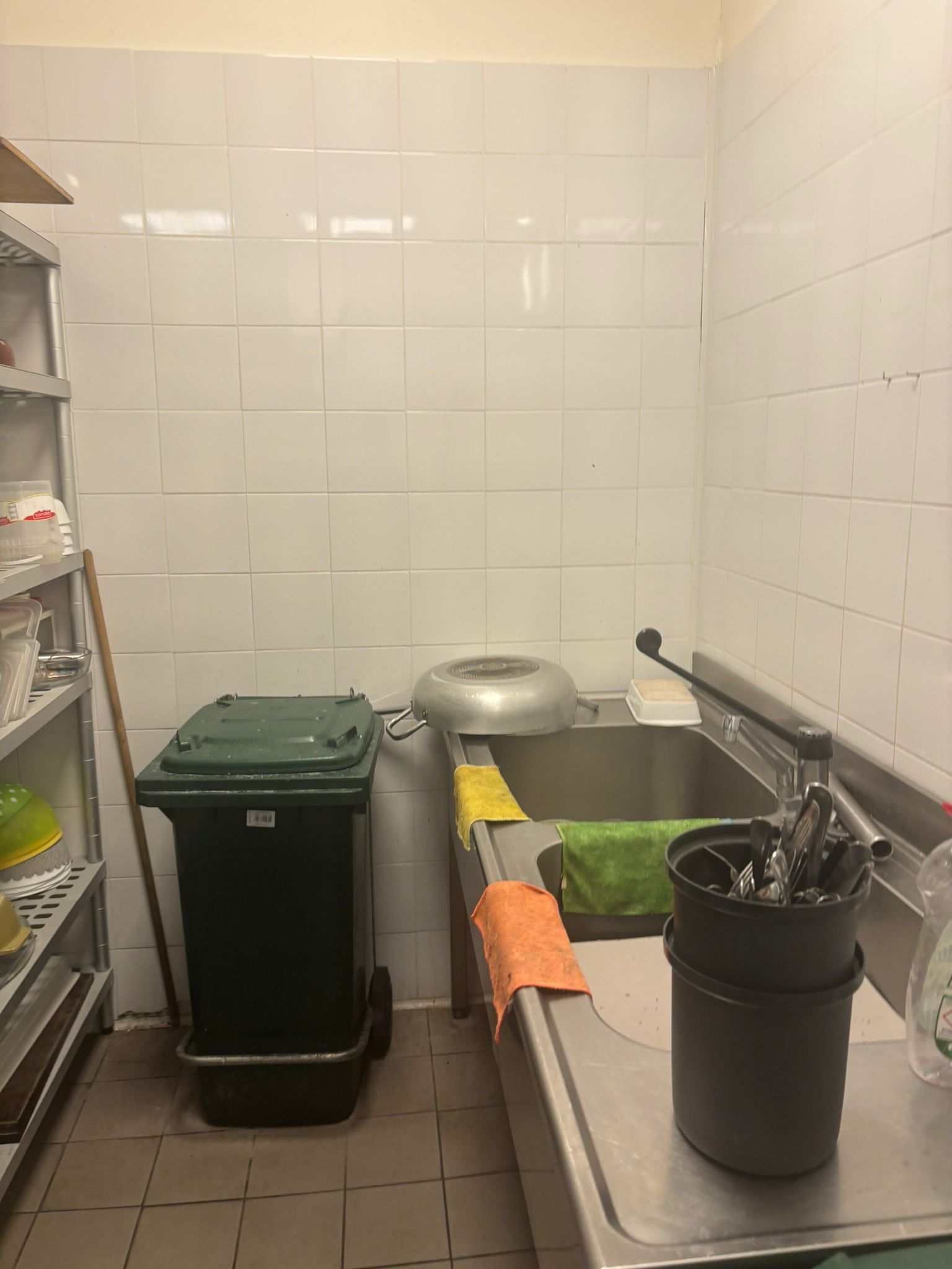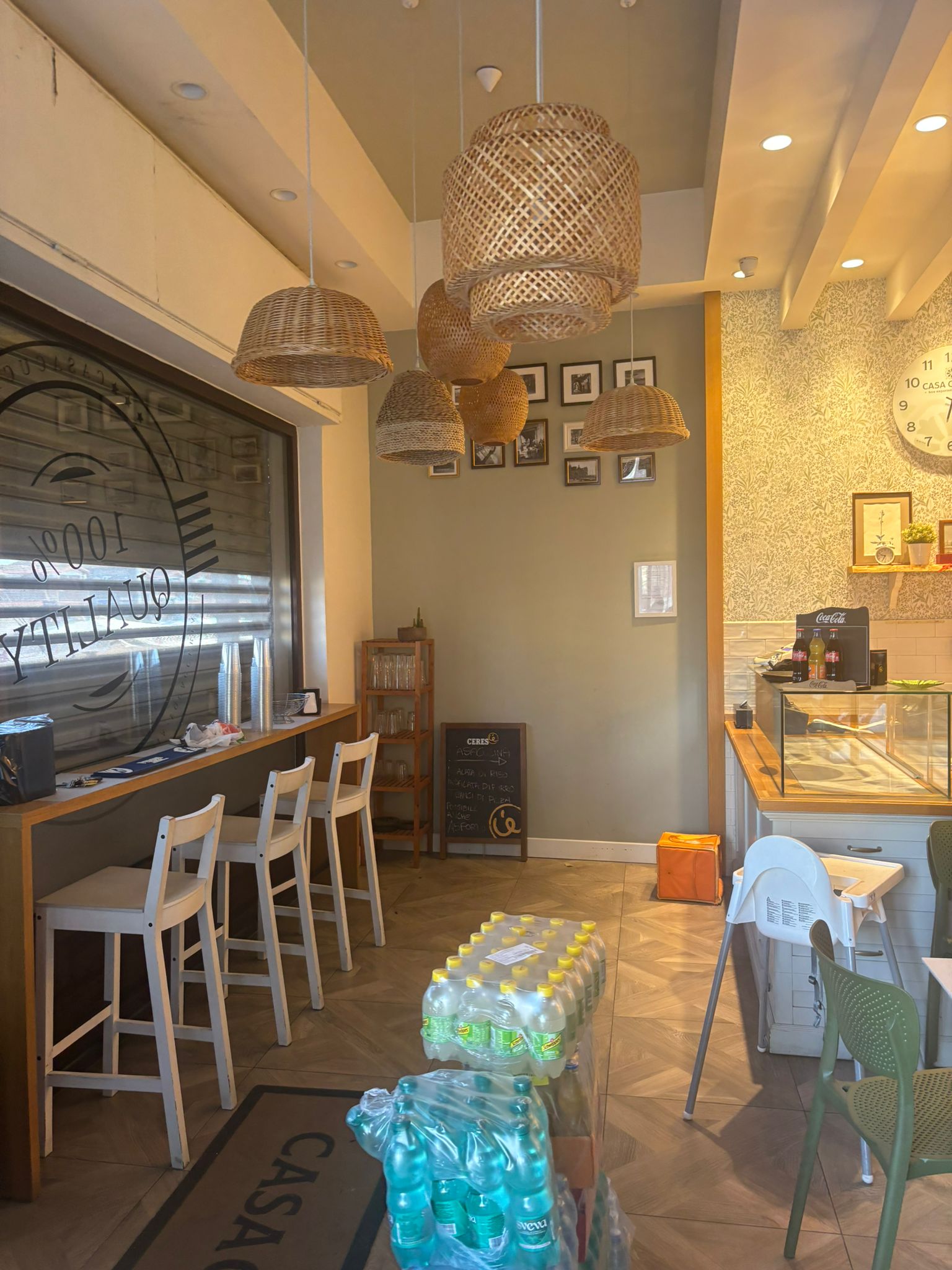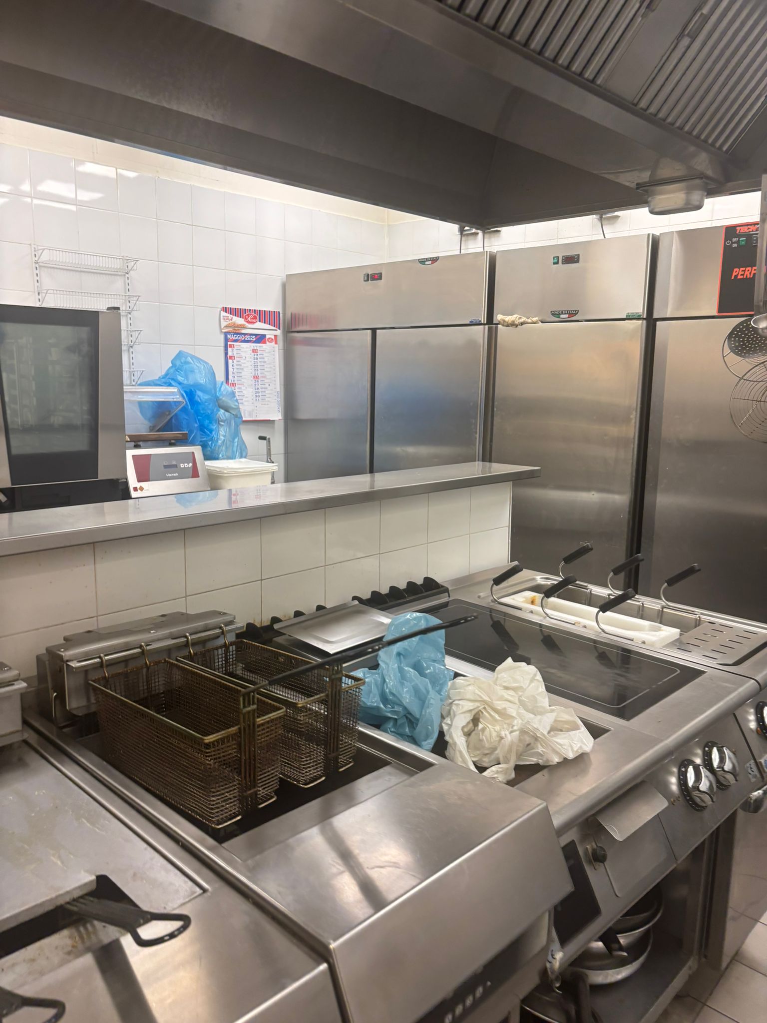 All’interno troviamo un’accogliente sala con bancone e vetrine calde, zona cassa, spazio per la consumazione, bagno per il pubblico e, sul retro, un’ampia cucina professionale dotata di ogni attrezzatura necessaria per la ristorazione, con annesso piccolo deposito e bagno per il personale.