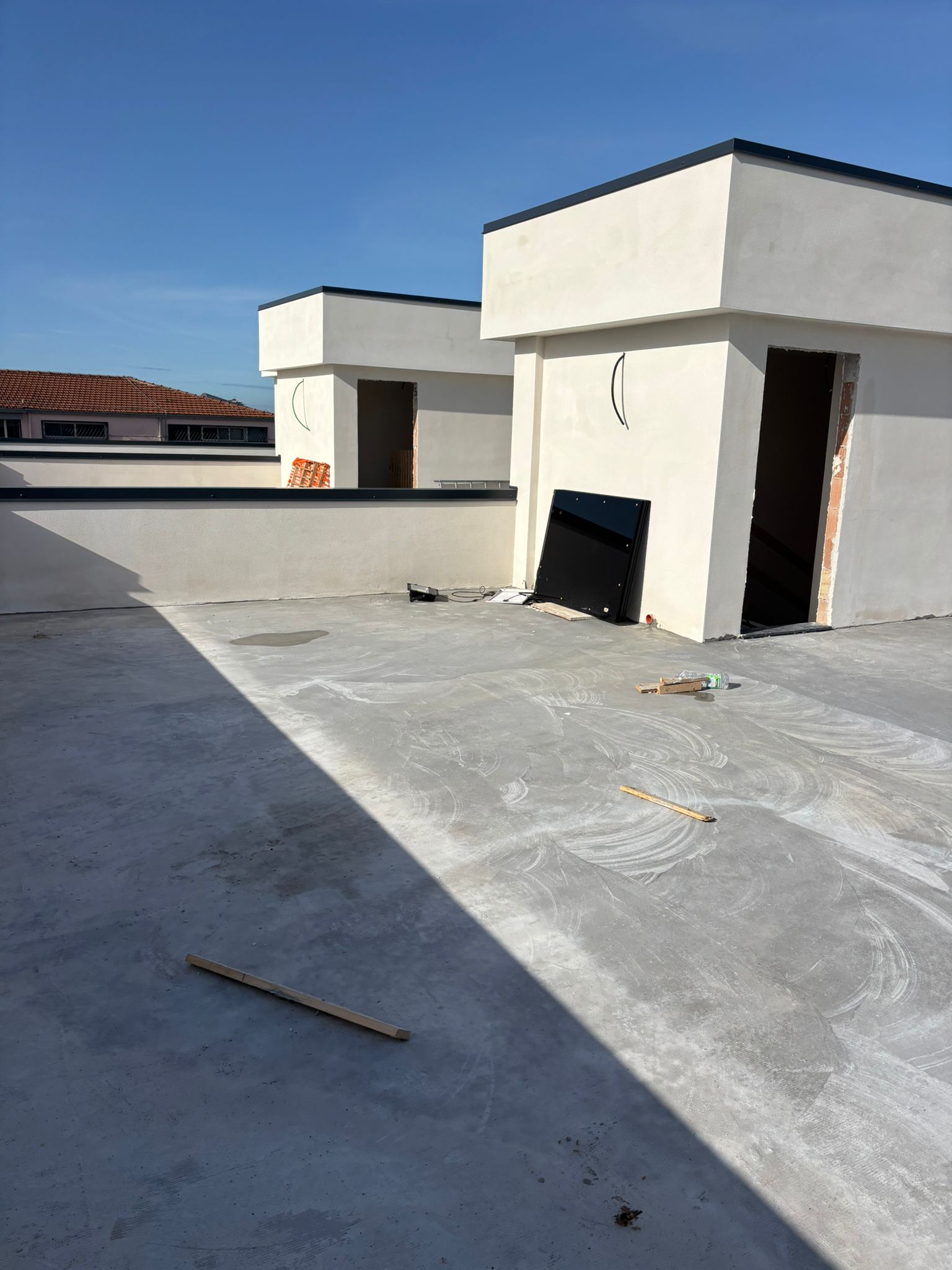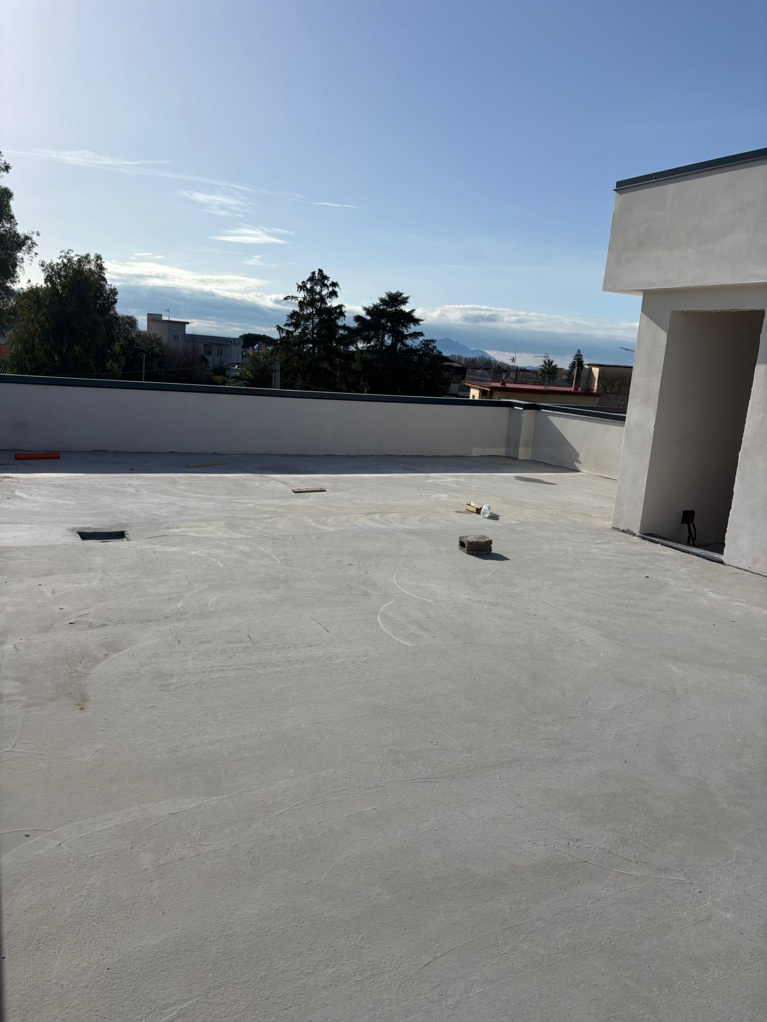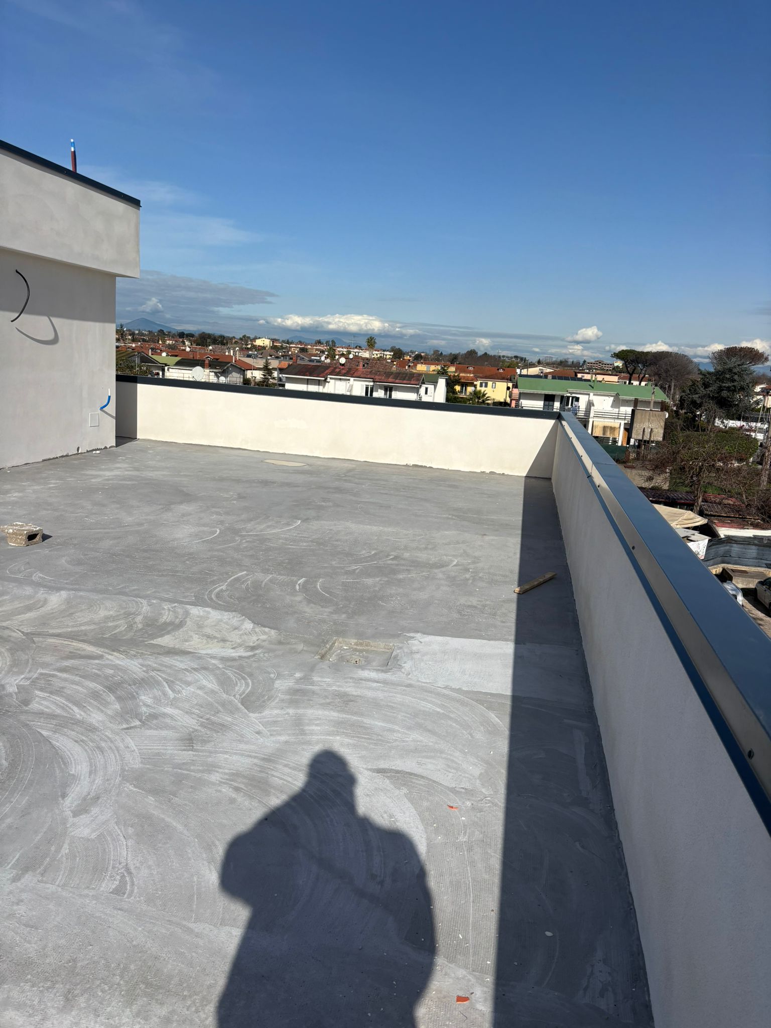 La villa dispone inoltre di un terrazzo di copertura già pavimentato, con predisposizione per l’installazione dei pannelli solari, e di un garage di 70 mq dotato di basculante elettrica.