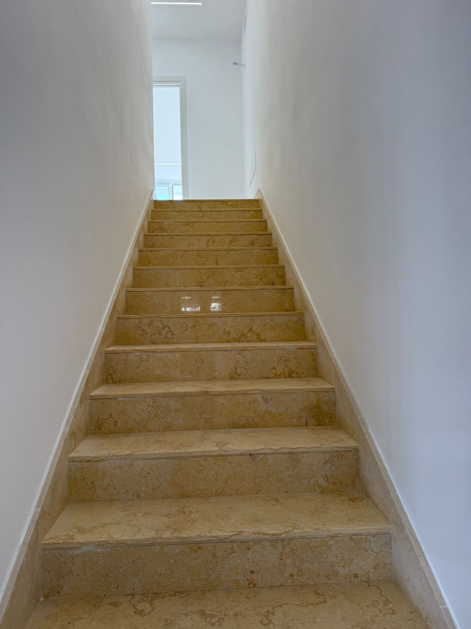 Salendo al primo piano, la zona notte è composta da una camera matrimoniale con cabina armadio e bagno privato, due camerette, un ulteriore bagno e una balconata perimetrale che regala luce e aria a tutti gli ambienti.