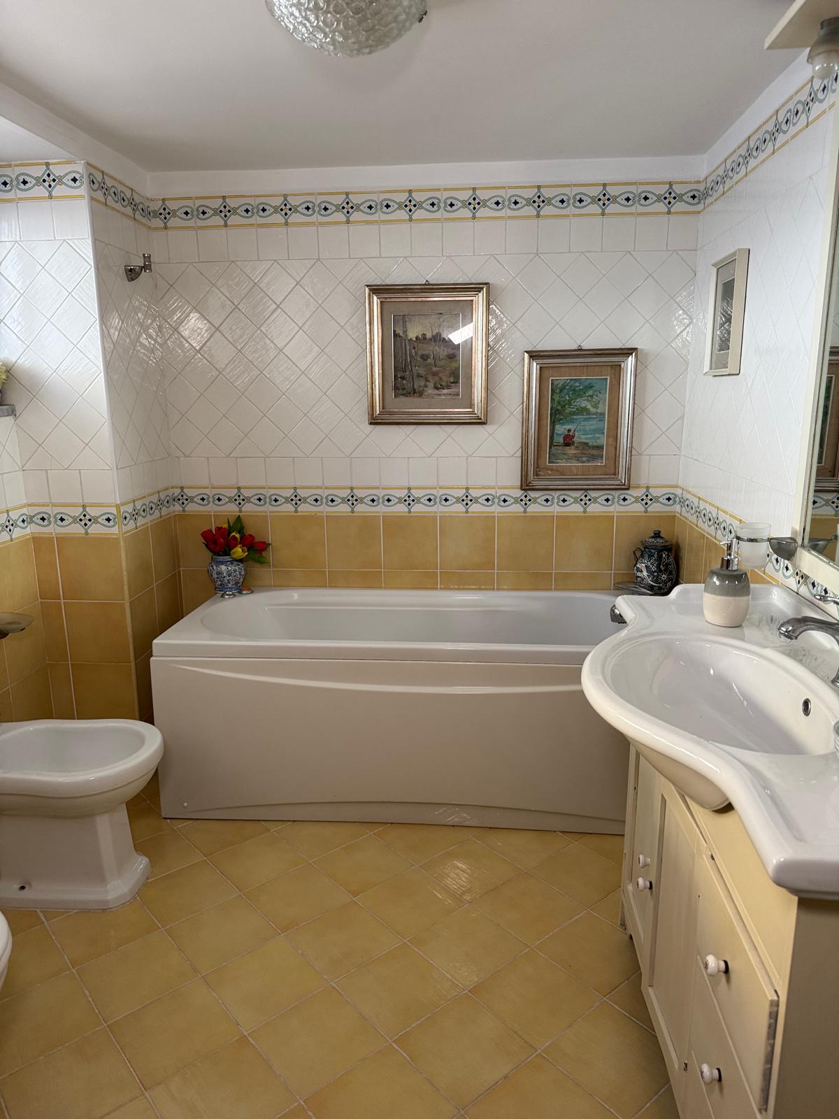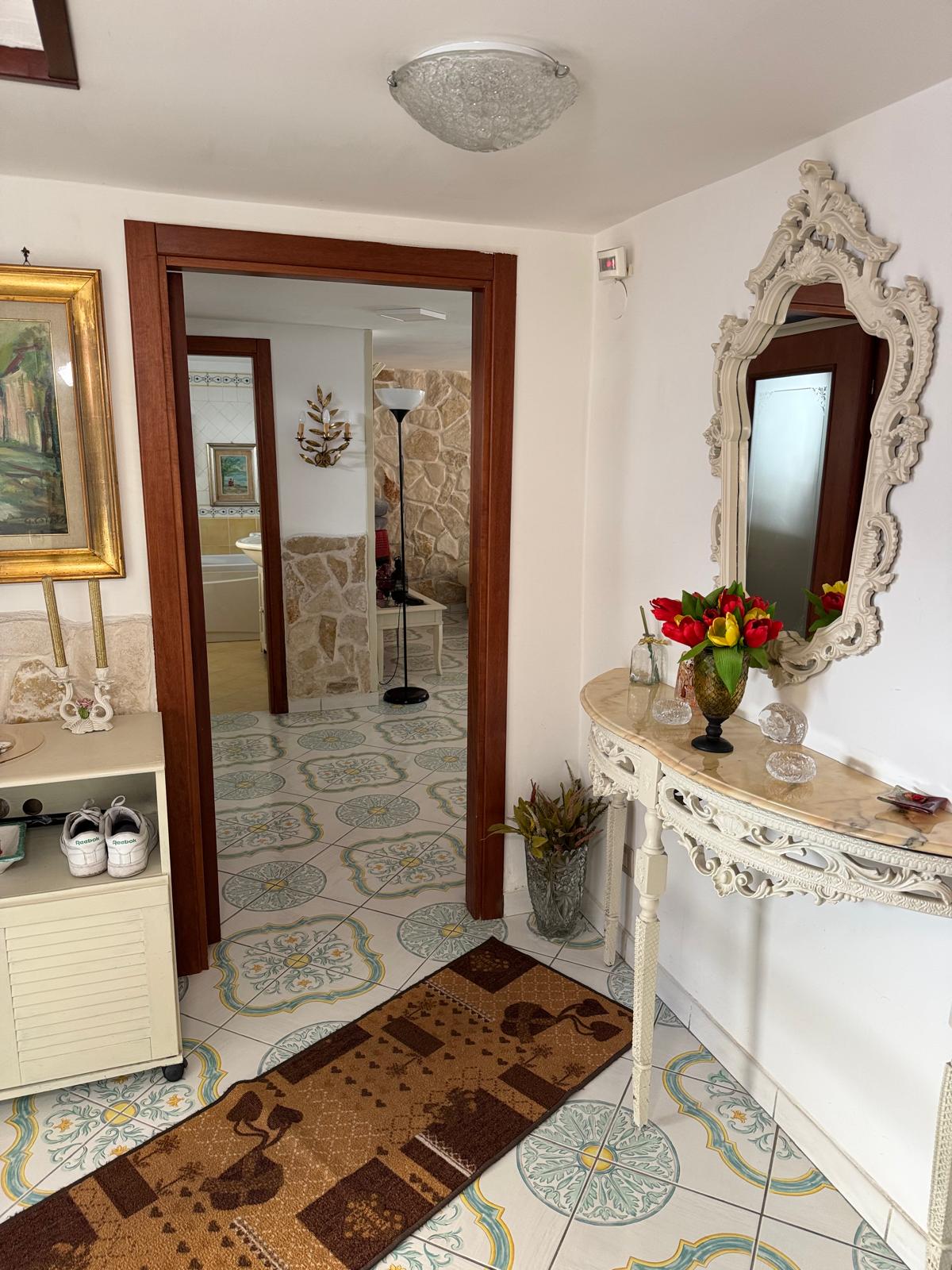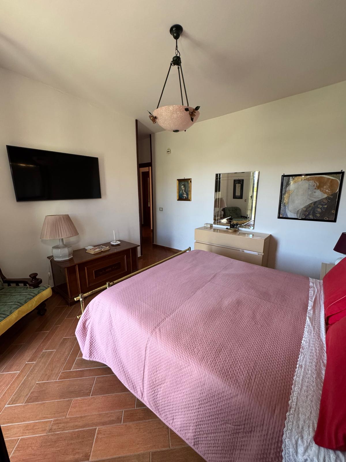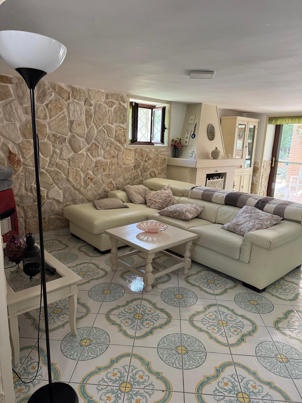 Attualmente la villa è suddivisa in due appartamenti, caratteristica che la rende particolarmente adatta sia a nuclei familiari numerosi sia a soluzioni bifamiliari o ad uso investimento. La taverna accoglie un ampio salone con camino e cucina in muratura, oltre a ripostiglio e bagno, creando un ambiente caldo e conviviale perfetto per momenti di relax.