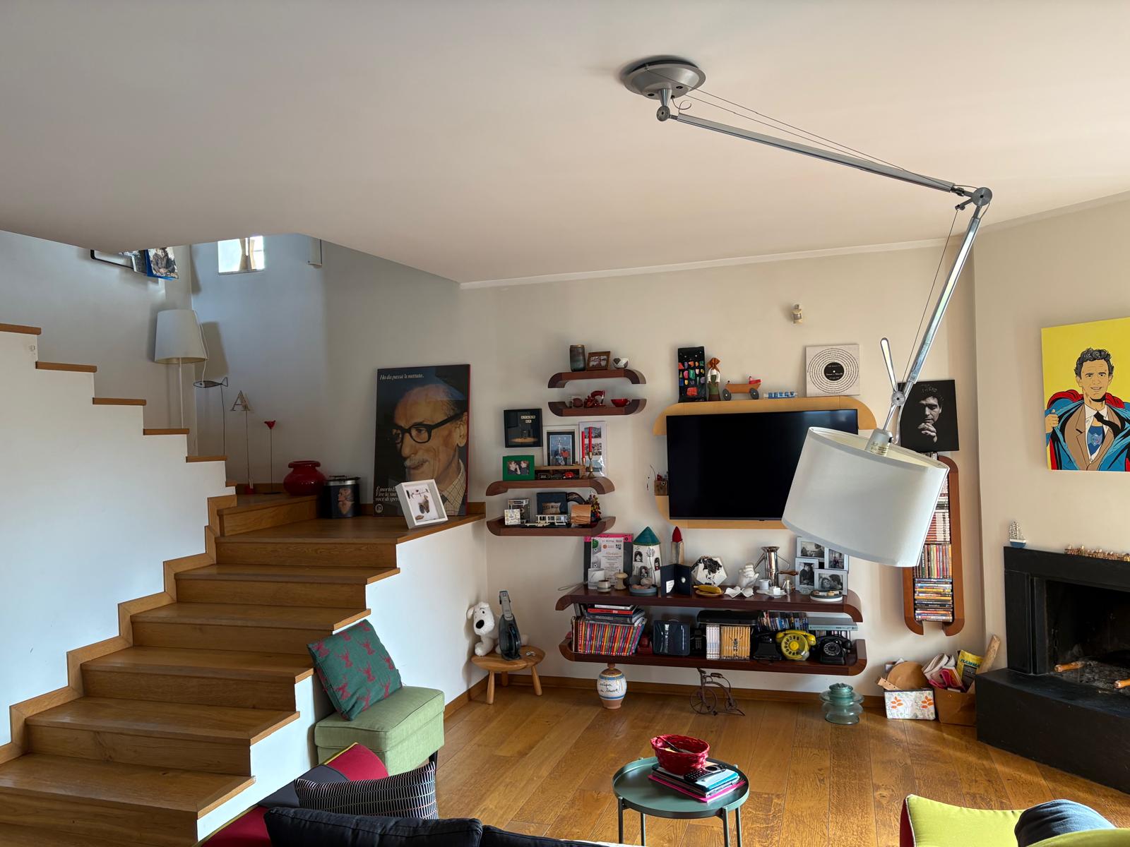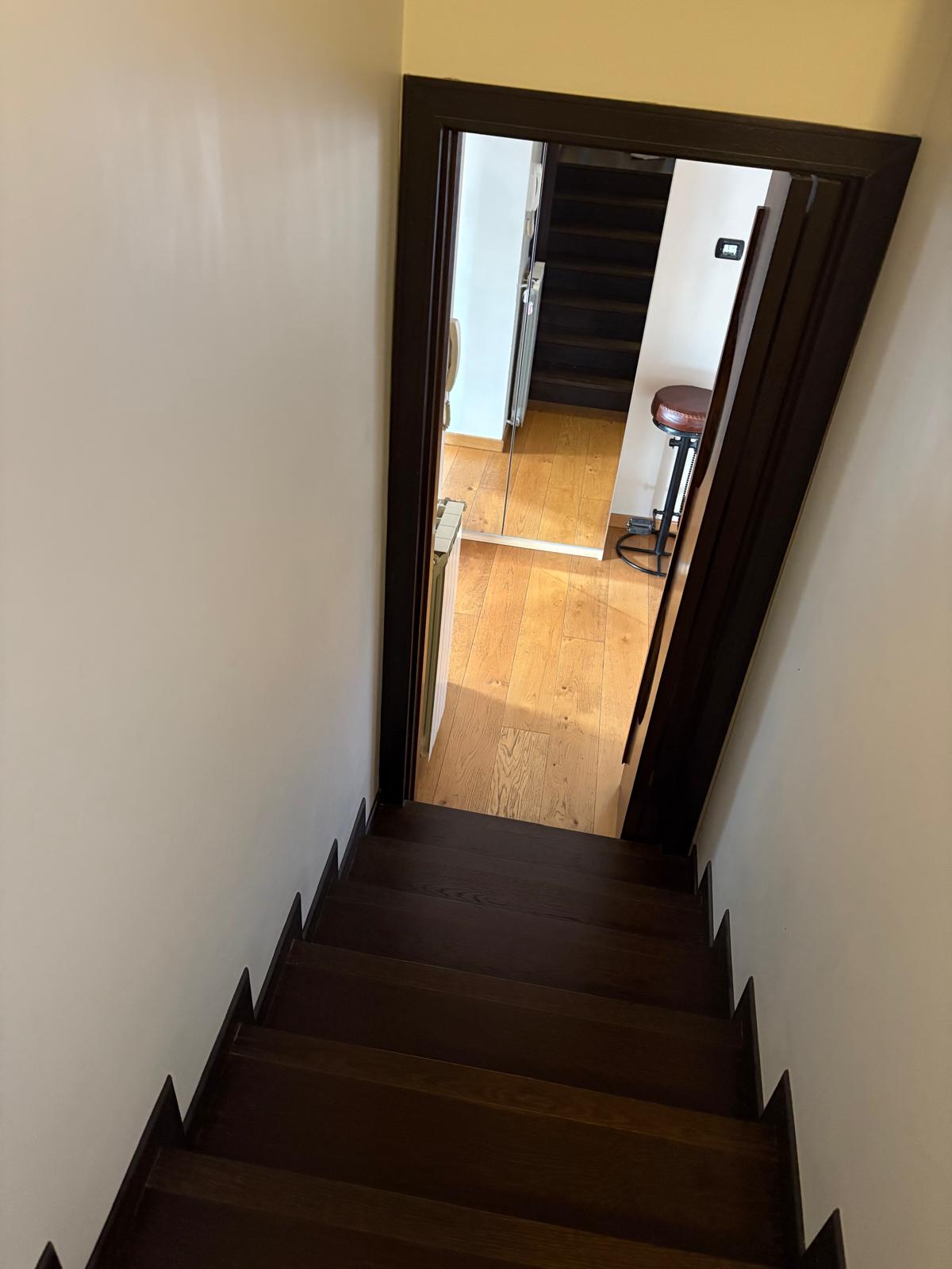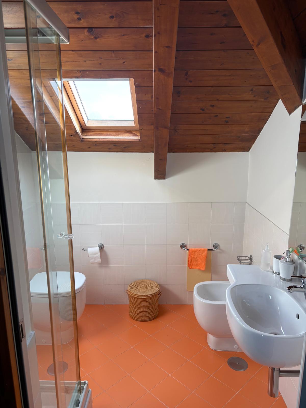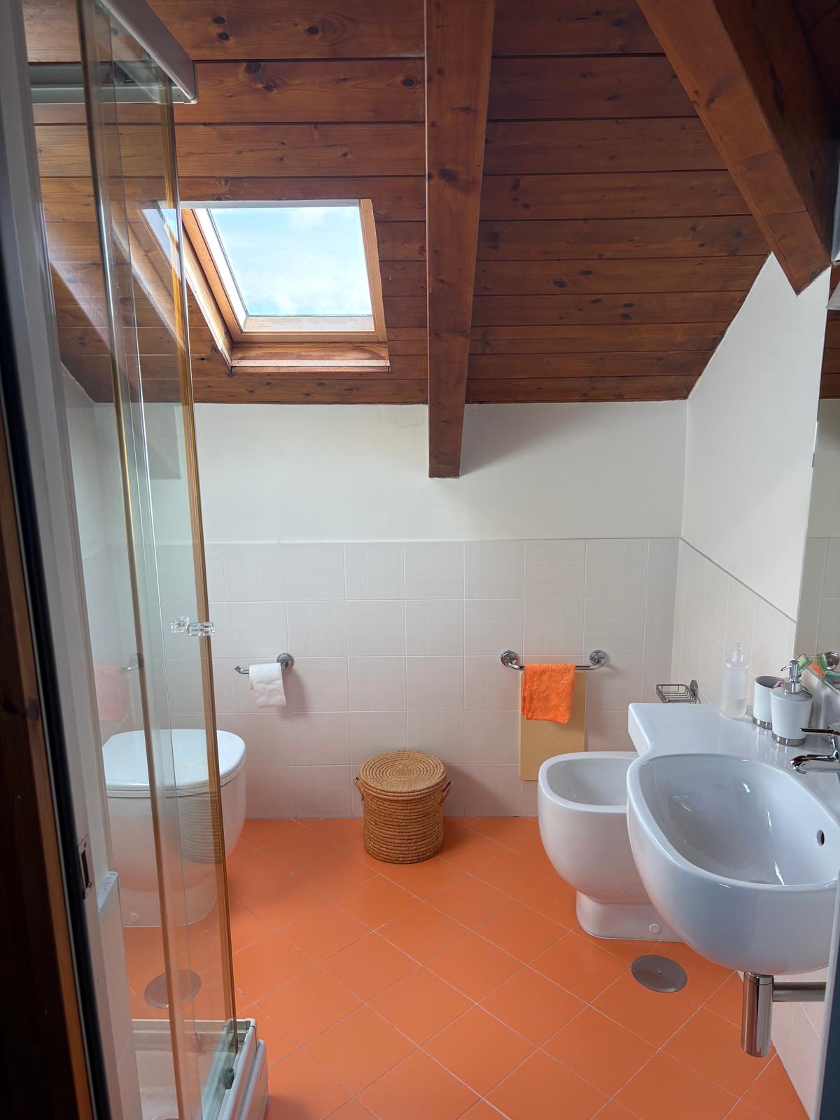 Il secondo piano mansardato ospita un’ampia camera con bagno privato arricchito dalla presenza di una sauna, uno spazio riservato e versatile ideale anche come suite padronale o area relax.