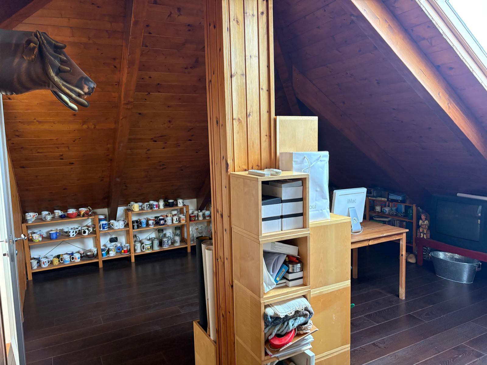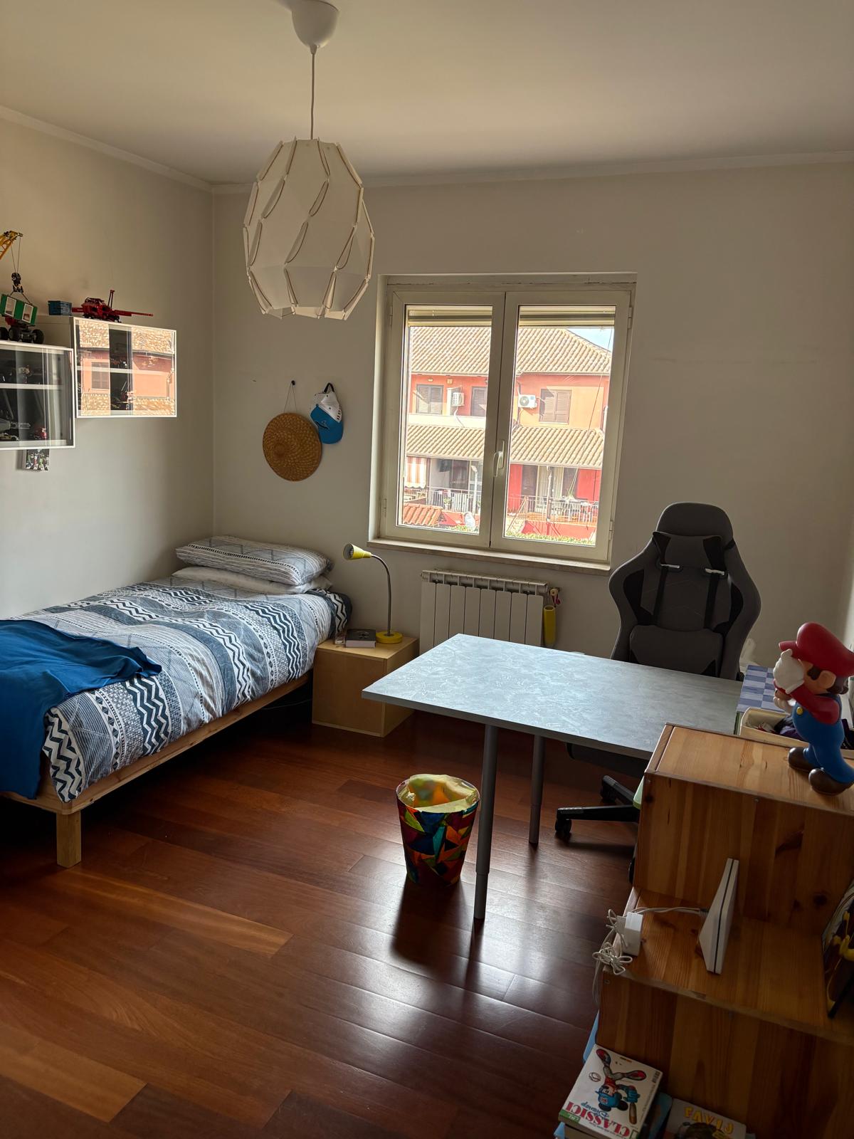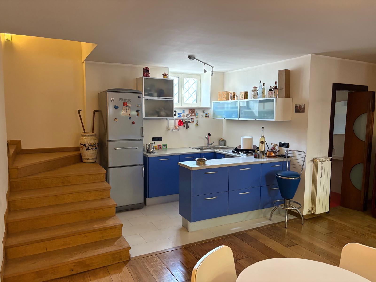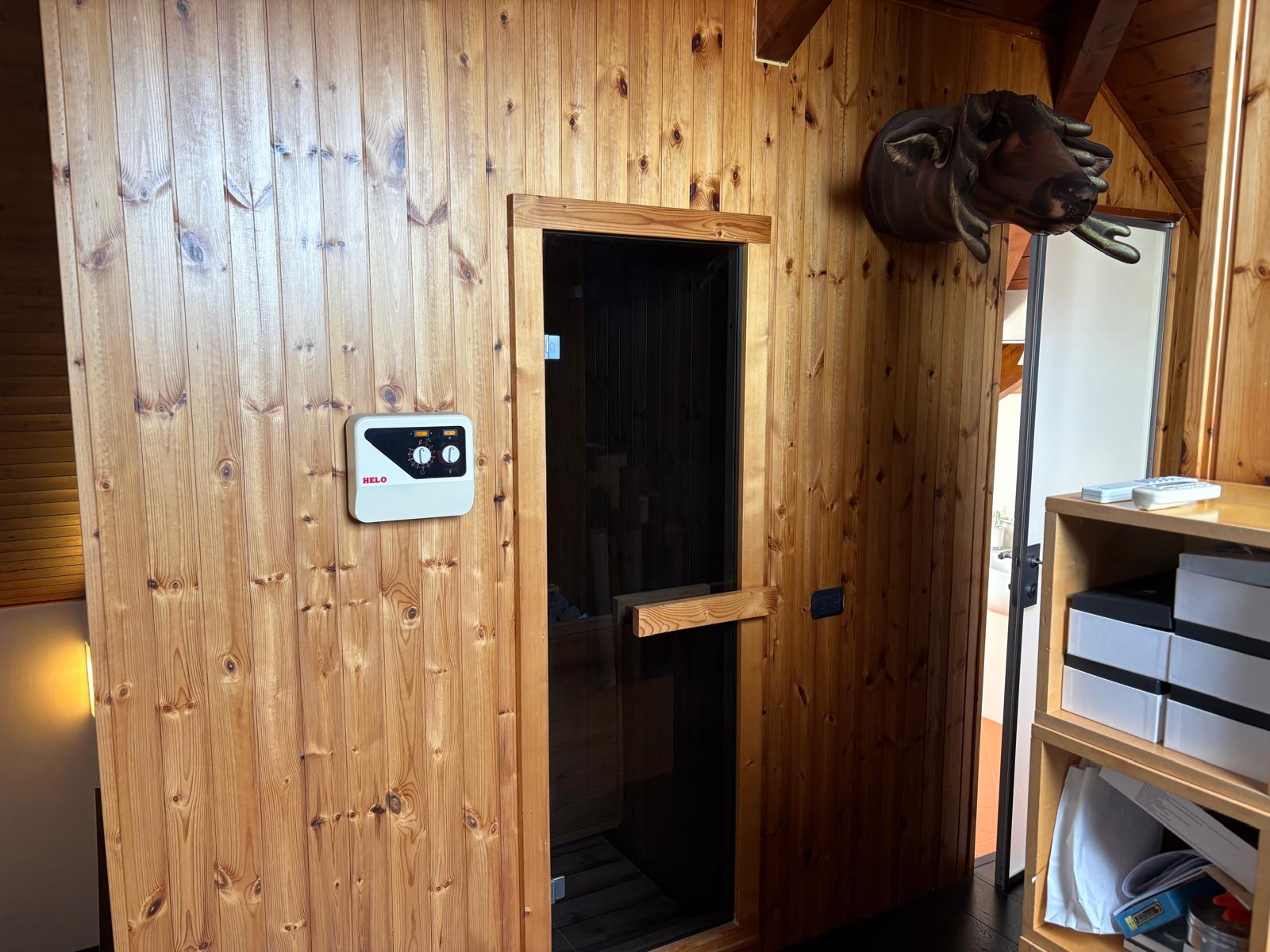 Il secondo piano mansardato ospita un’ampia camera con bagno privato arricchito dalla presenza di una sauna, uno spazio riservato e versatile ideale anche come suite padronale o area relax.